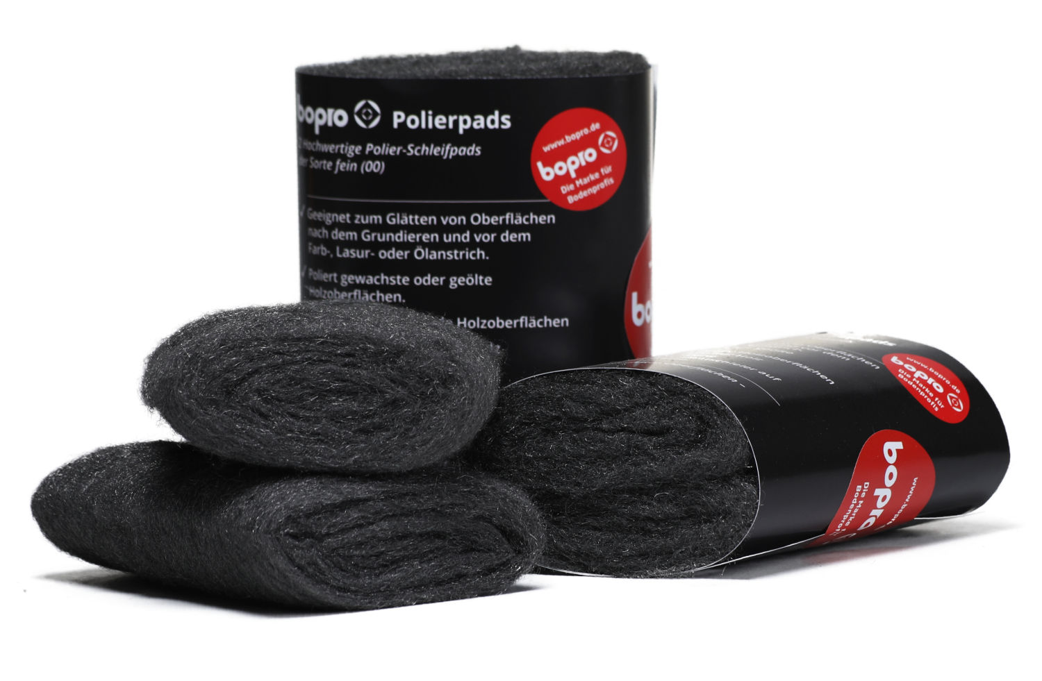 Zwei hochwertige Polier-Schleifpads der Sorte fein (00) – zur Holzbehandlung und Reinigung von Oberflächen aus Stein, Metall, Glas und Kunststoff