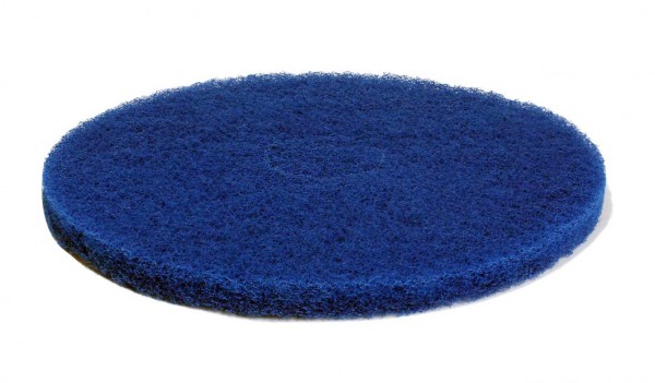Blaue Pads sind speziell für die Pflegefilmsanierung entwickelt. Diese Art der Reinigung kommt für elastische Bodenbeläge wie etwa Linoleum, PVC oder Kautschuk in Frage. Dabei wird der verschmutzte oder sogar beschädigte Pflegefilm zuerst abgeschleift und dann wieder erneuert. Die Pflegefilmsanierung ist damit zeitsparend, kostengünstig, hygienisch und umweltfreundlich. Im Härtegrad zwischen braun und grün liegend, sind die abrasiven Qualitäten des blauen Pads noch stark genug ausgeprägt, um den jeweils alten Pflegefilm zuverlässig abzutragen, ohne aber den darunter liegenden Boden zu beschädigen.