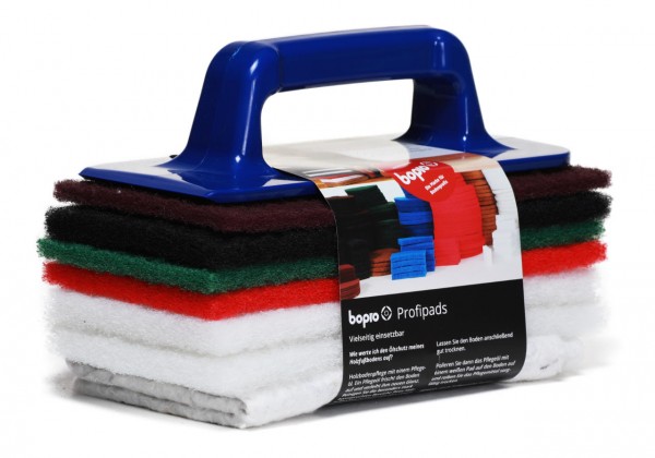 Unser praktisches Allroundset von bopro mit den 25 cm Normalpads ist ideal für die umfassende Bearbeitung von Holzflächen: ob es sich um schwer zugängliche Partien eines Holzbodens, kleinere Bodenflächen oder große Möbel handelt - die handlichen Pads sorgen für optimale Ergebnisse.
