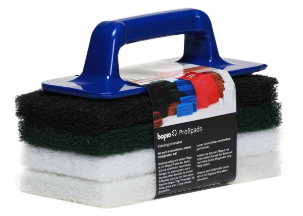 Unser praktisches Basisset von bopro mit den großen 25 cm Superpads ist ideal für die umfassende Bearbeitung von Holzflächen: ob es sich um schwer zugängliche Partien eines Holzbodens, kleinere Bodenflächen oder große Möbel handelt - die handlichen Superpads sorgen für optimale Ergebnisse.