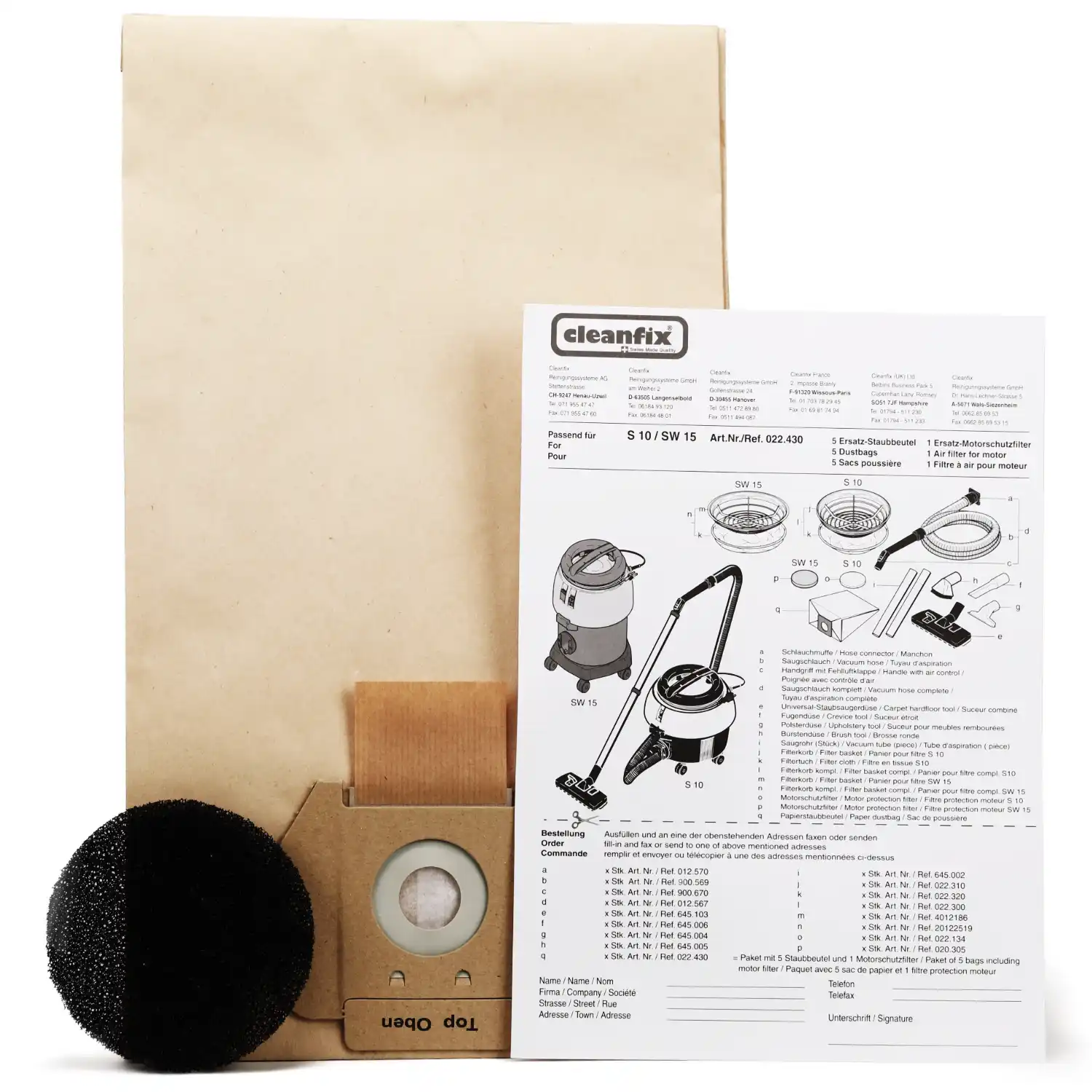 5 x Papierfilterbeutel und 1x Ersatz-Motorschutzfilter von Cleanfix für... mehr