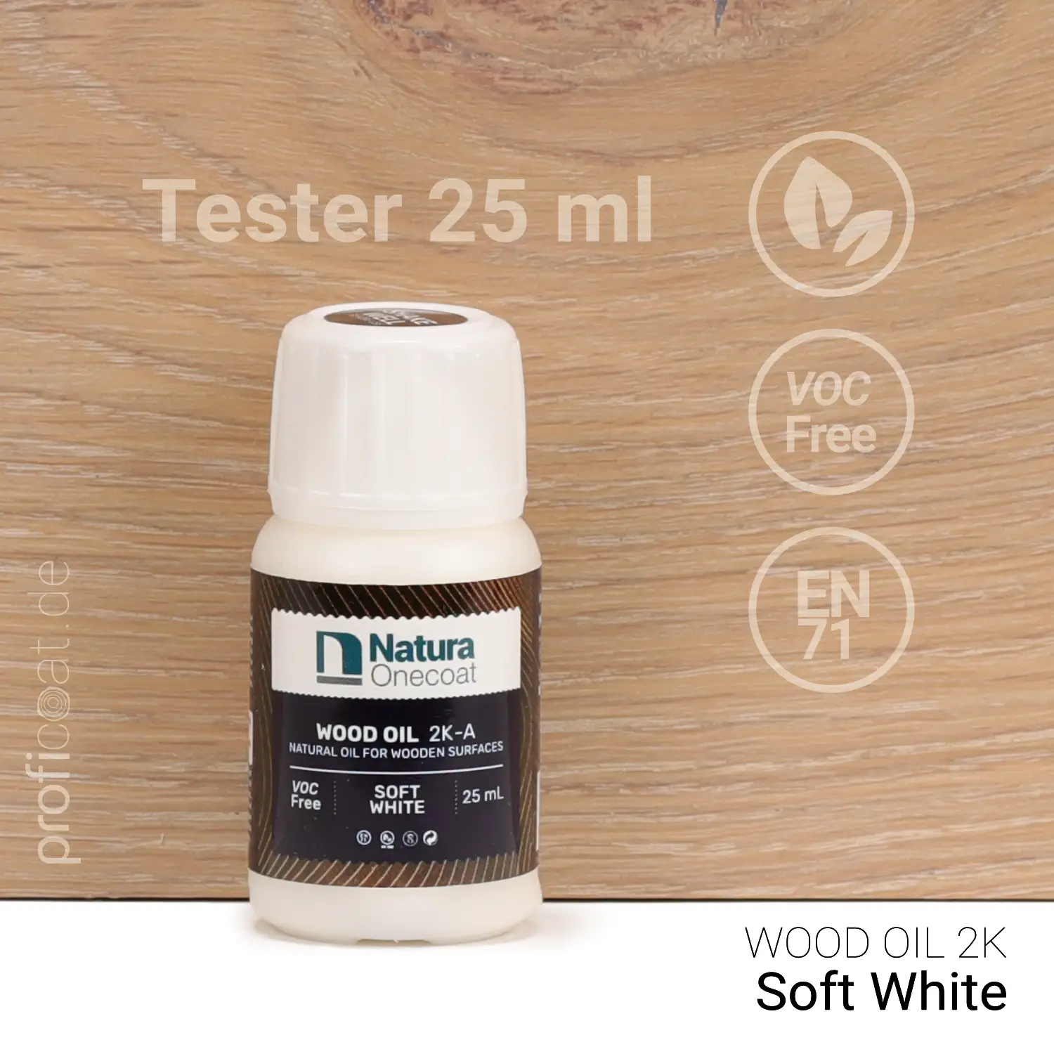 Stellen Sie Ihre Frage zum Produkt "Probe Wood Oil Farbton SOFT WHITE 25ml von Natura Onecoat".