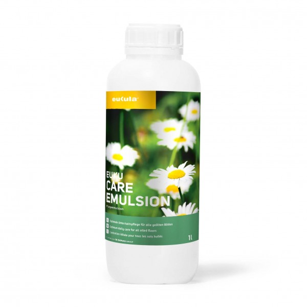 Mit ihrer Care Emulsion hat die Firma eukula ein naturölbasiertes Produkt für die Unterhaltreinigung und -pflege von geölten Holz- und Korkböden entwickelt. Das vielseitig einsetzbare Produkt ist auch für die Grundreinigung geeignet, und auch die für Skandinavien so typische Seifenbehandlung kann damit durchgeführt werden. Hinweis: Für eine Anwendung auf lackierten/versiegelten Oberflächen ist die Euku Care Emulsion nicht geeignet.