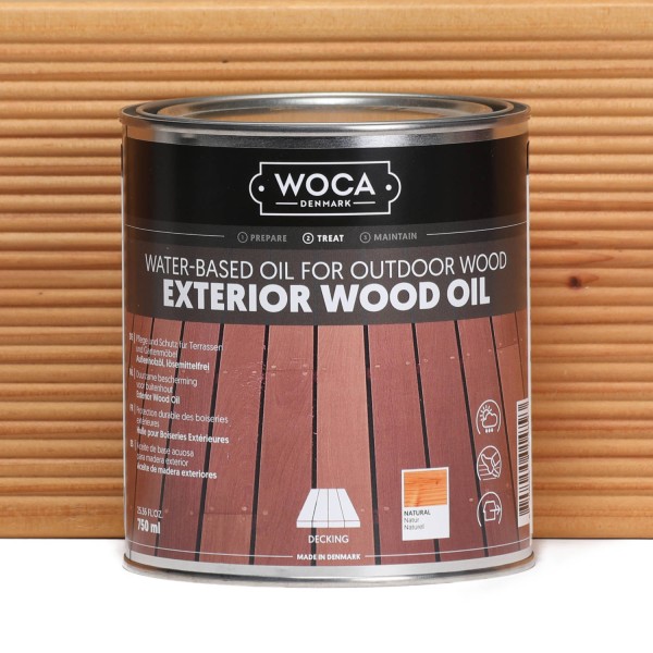 Mit dem WOCA Exterior Öl Terrassenöl lassen sich Holzterrassen optimal pflegen! Das Öl ist vielseitig einsetzbar und kann sowohl zur Grundbehandlung als auch zur laufenden Pflege verwendet werden. Auch zur jährlichen Wiederauffrischung des Holzes in den Frühjahrsmonaten ist das WOCA Exterior Öl ideal geeignet. Selbstverständlich können Sie neben Holzterrassen auch andere Holzoberflächen im Außenbereich, wie etwa Gartenmöbel oder Holzfassaden, mit dem Öl behandeln.
