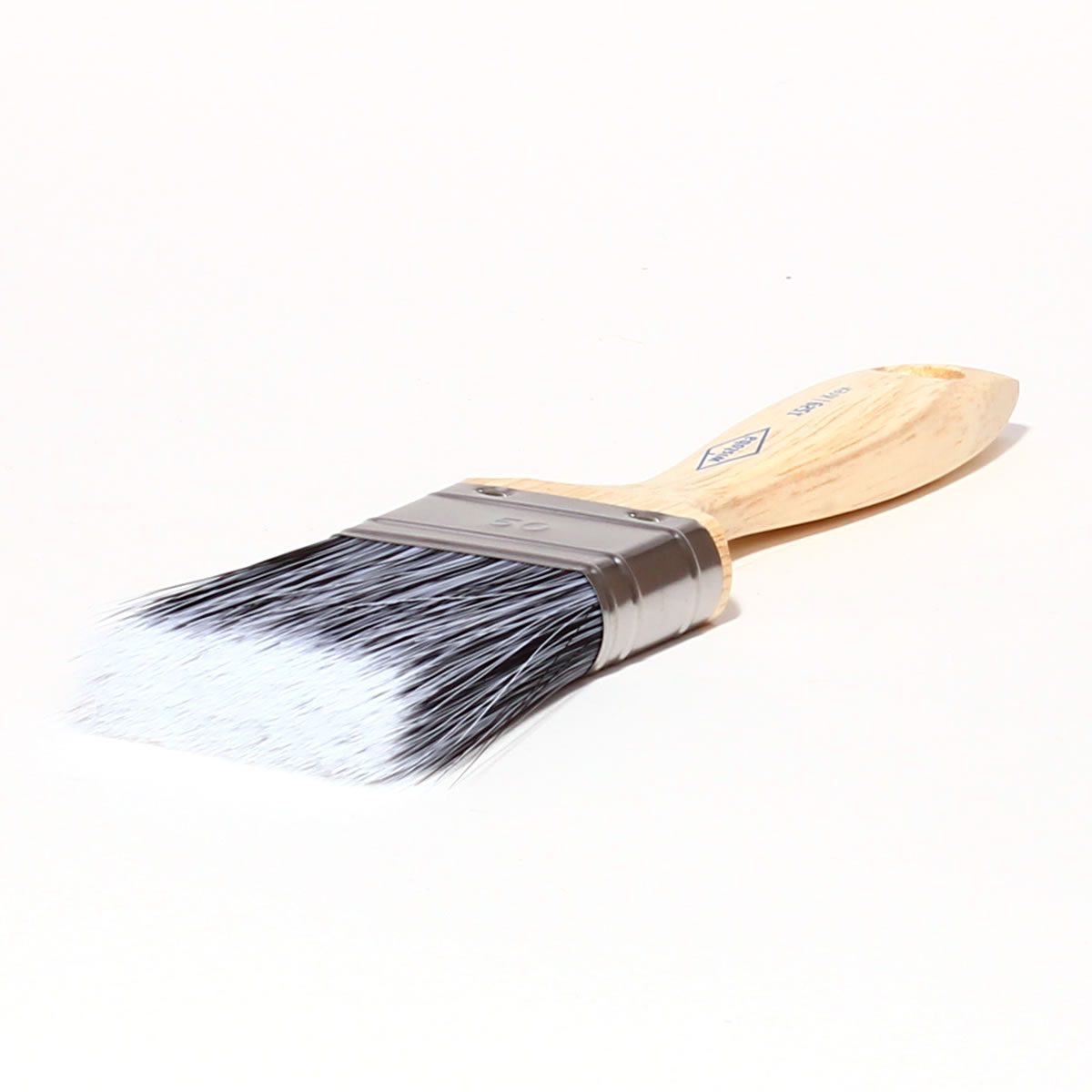 Der Flachpinsel von Wistoba wurde aus Krex Kunstfasern gefertigt. Bei diesem Malerpinsel wurde außerdem ein rostfreies Blech und ein roher Holzstiel verarbeitet.