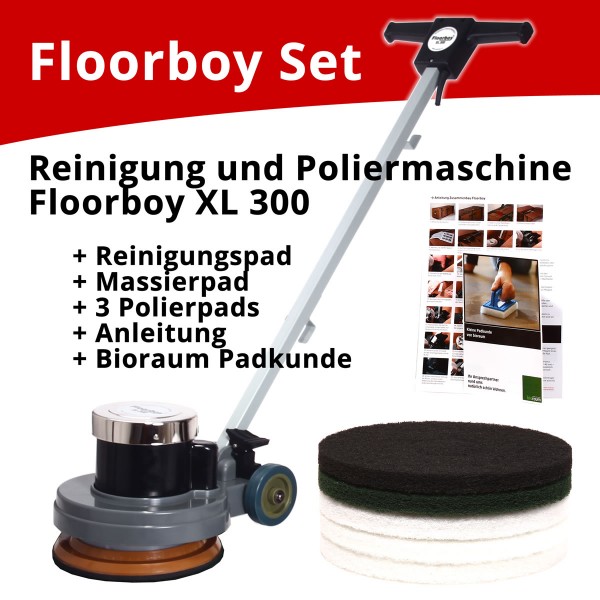 Floorboy mit Starterzubehör: ab jetzt pflegen Sie ganz einfach wie ein Profi. Der Floorboy XL300 ist eine einfach zu bedienende 12 Zoll Reinigungs- und Poliermaschine.