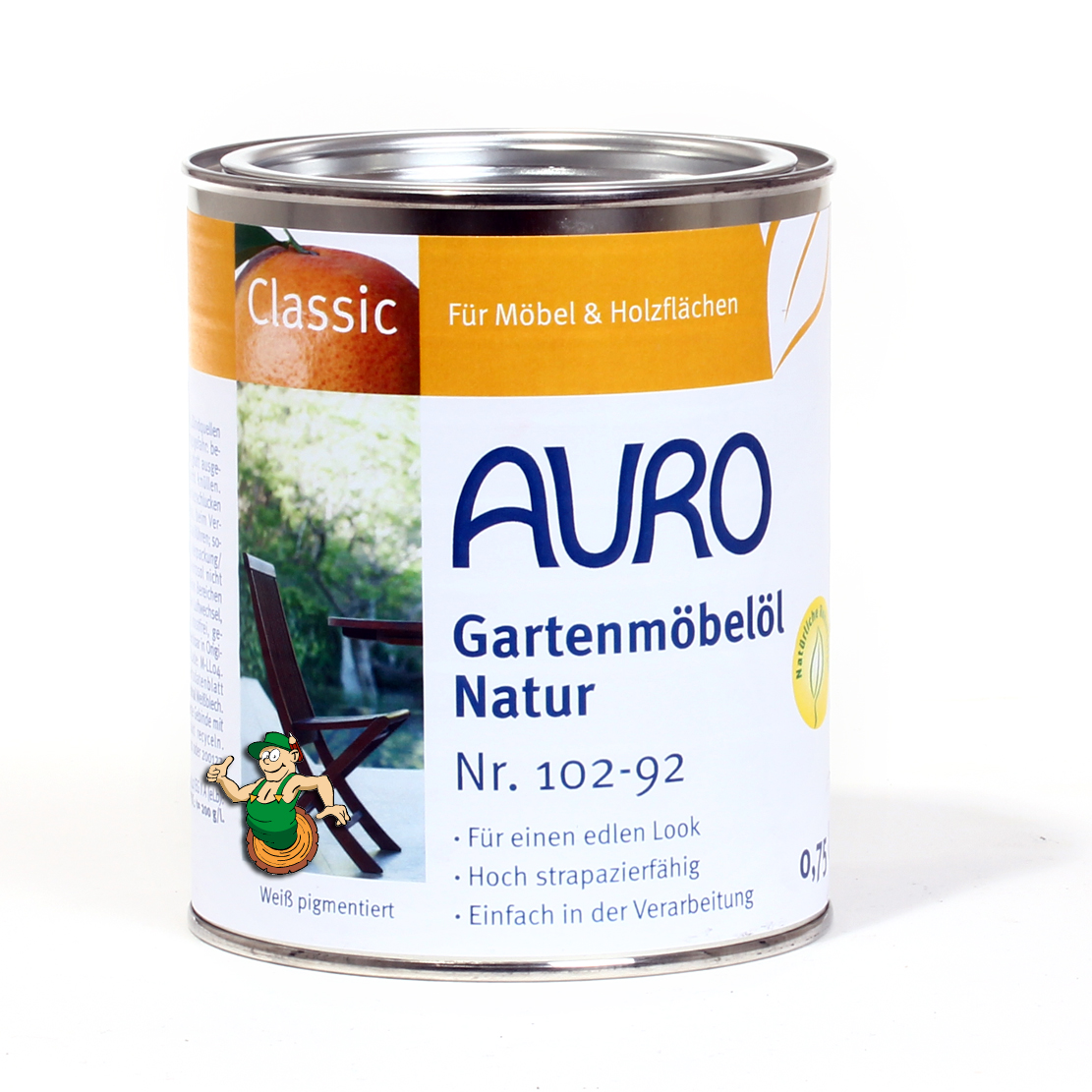 Das Gartenmöbelöl aus der Classic-Edition von AURO ist ein wasser- und schmutzabweisendes Öl in drei Farbnuancen: Teak, Bankirai und Natur (weiß pigmentiert). Mit natürlichem Zitrusduft. Kein Abblättern der Farbe und einfach aufzutragen mit Lappen oder Pinsel. Die Öle sind atmungsaktiv, Feutigkeitsschwankungen werden reguliert und die Wetterbeständigkeit Ihrer Gartenmöbel wird spürbar verbessert. Die Pigmentierung sorgt für eine natürlichen, frischen Holzfarbton und verstärkt den UV-Schutz.