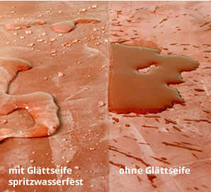 Das Glätteseife-Konzentrat ist transparent und damit für helle und dunkle Oberflächen bestens geeignet. Eine leichte Farbtonvertiefung des Untergrundes ist je nach Oberflächenbeschaffenheit möglich. Auf getönten Kalkoberflächen kann eine Farbvertiefung oder auch kalkseifentypische weißliche Wolkigkeit auftreten (Probefläche anlegen!).