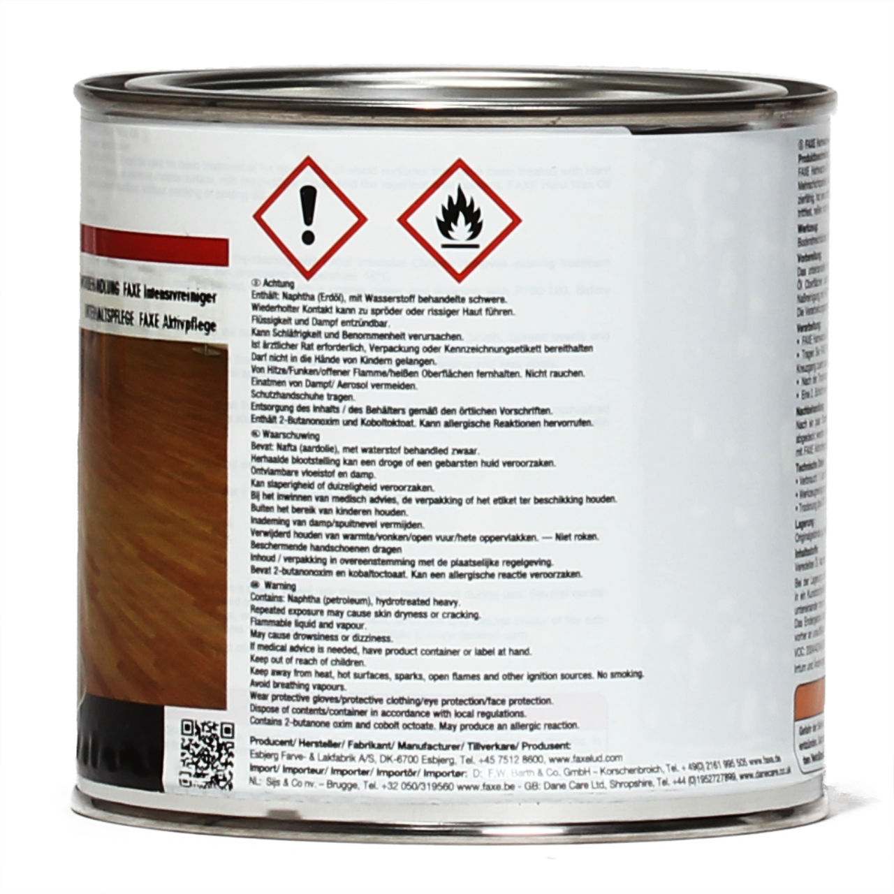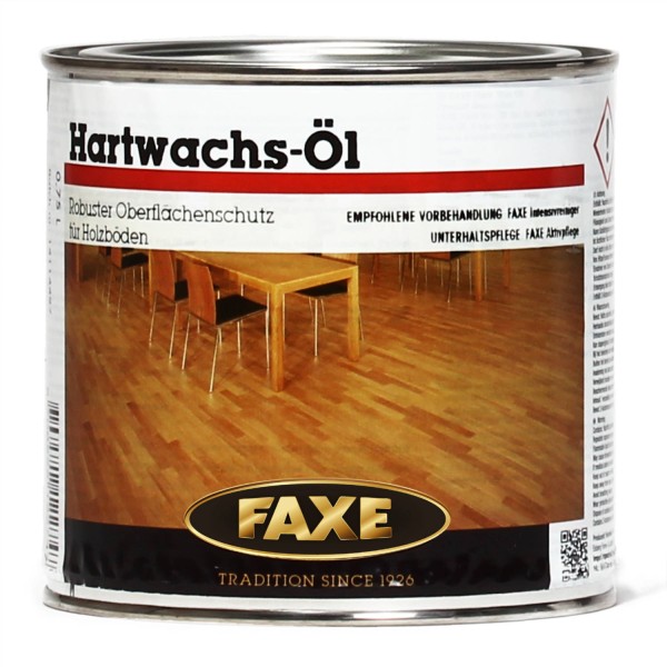 FAXE Hartwachs-Öl ist eine professionelle Oberflächenbehandlung für Holzfußböden (z.B. Massivholzdielen und –parkett, Mehrschichtparkett, Mosaikparkett und viele Holzwerkstoffe z.B. OSB) und Kork. Die fertige Oberfläche ist pflegeleicht, strapazierfähig, hat eine natürliche, tiefe Farbwirkung und ist Wasser und Schmutz abweisend. FAXE Hartwachs-Öl Oberflächen sind trittfest, reißen nicht und blättern nicht ab.