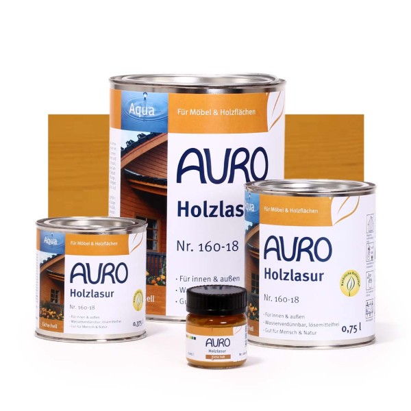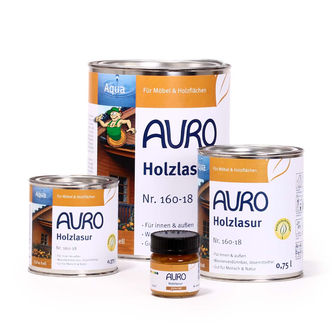 Wasserbasierte Holzlasur in 19 attraktiven Farbtönen, einfach zu verarbeiten, schnelltrockend und für Spielzeug geeignet. Unten den von Stiftung Warentest (Heft 5/06) untersuchten Holzlasuren war die AURO Holzlasur Aqua Nr. 160 als Testsieger übrigens die Nr.1.