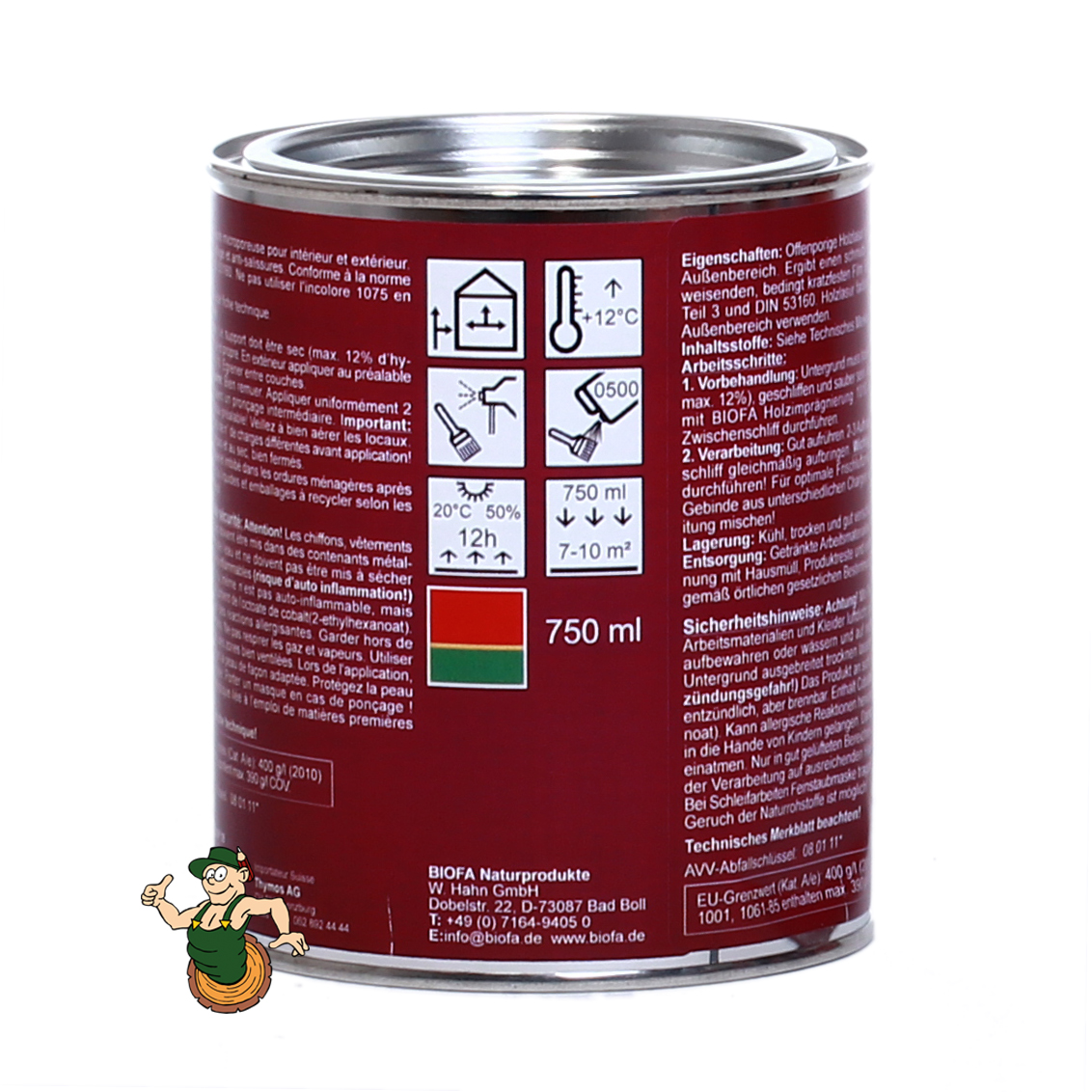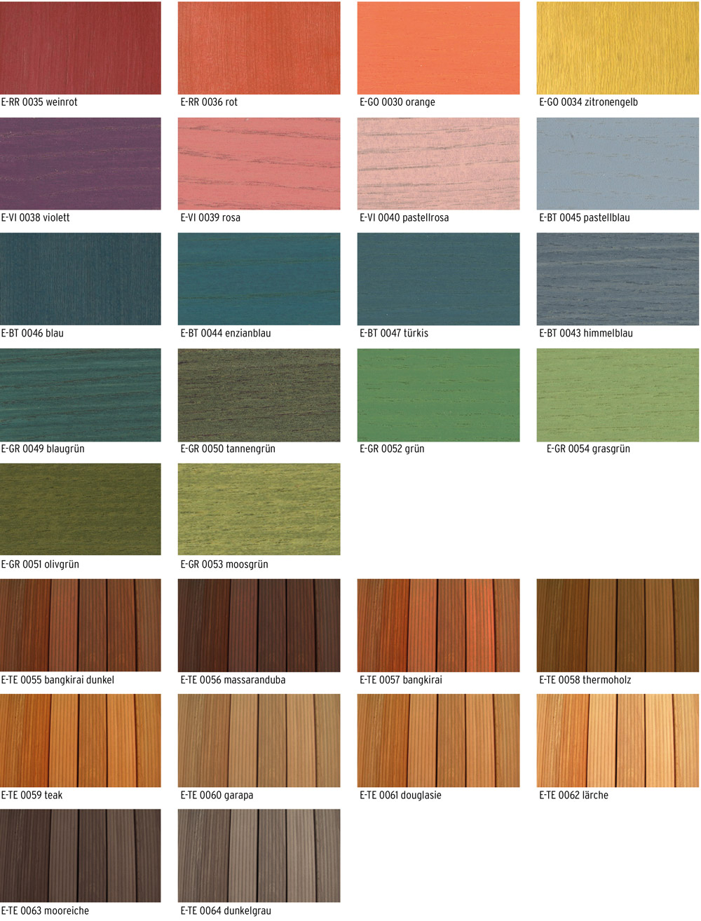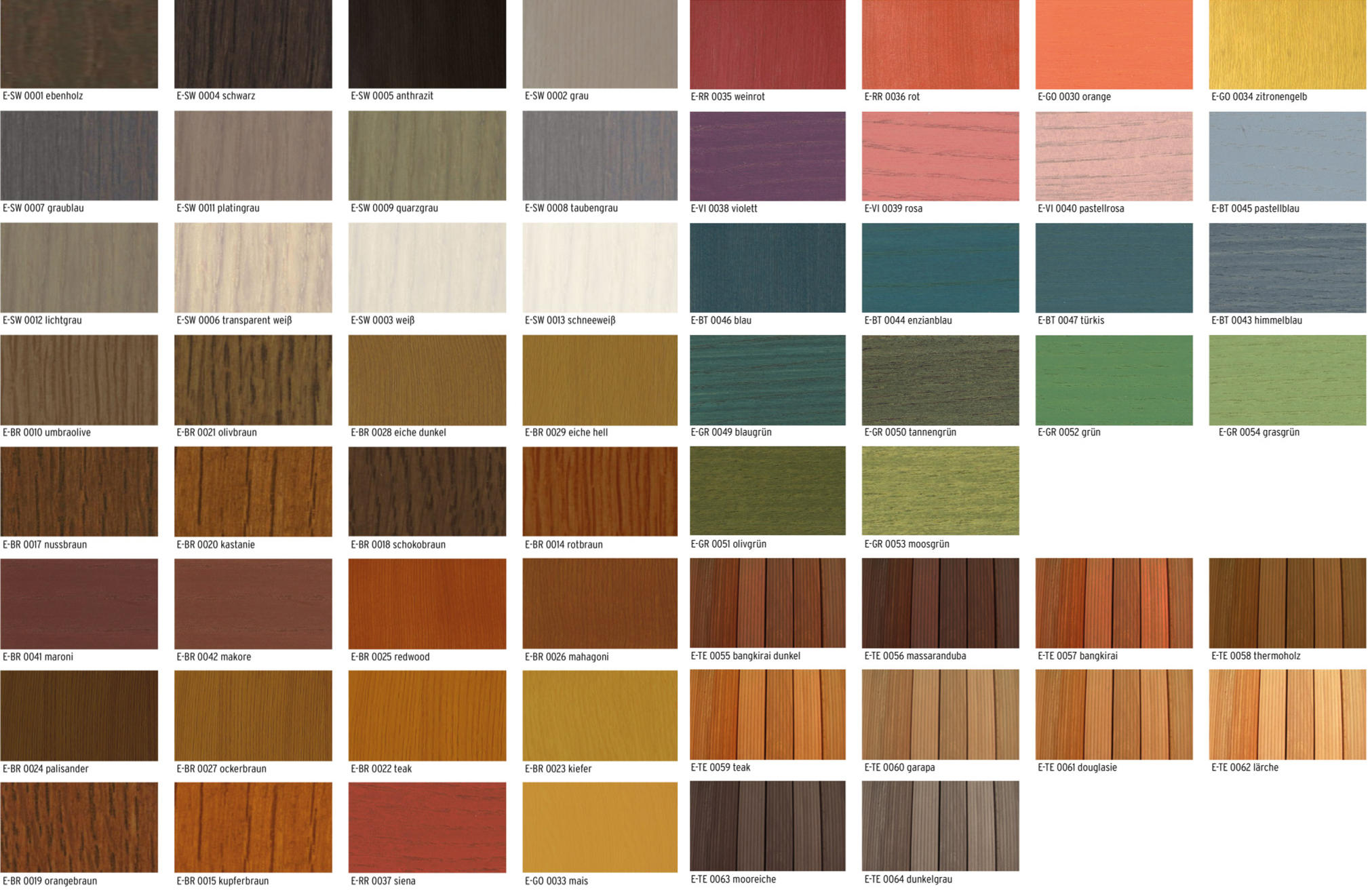 Die Holzlasur farbig ist verschiedenen Farbtönen erhältlich bzw. anmischbar in den Farben des BIOFA Farbtonfächers für transparente Produkte (außer Spezialeffekte), siehe unten weiterführende Informationen. Beachten Sie bitte, dass der Farbton je nach Untergrund etwas variieren kann, der Fächer dient lediglich zur Orientierung. Wir empfehlen vorher einen Probeanstrich zu machen.