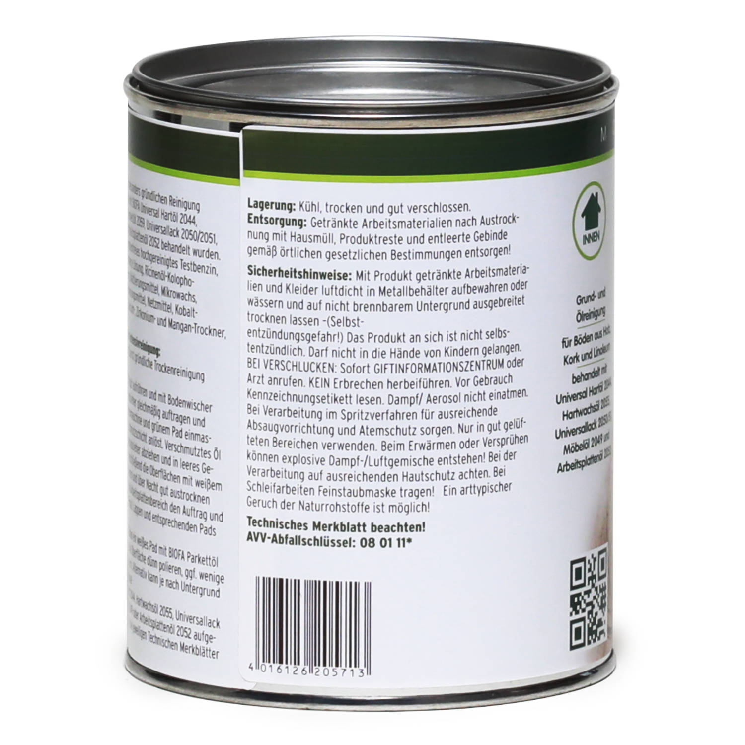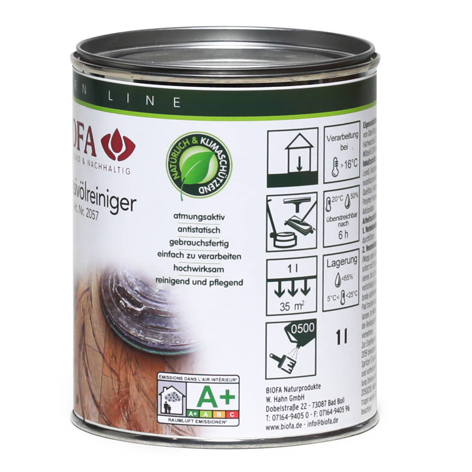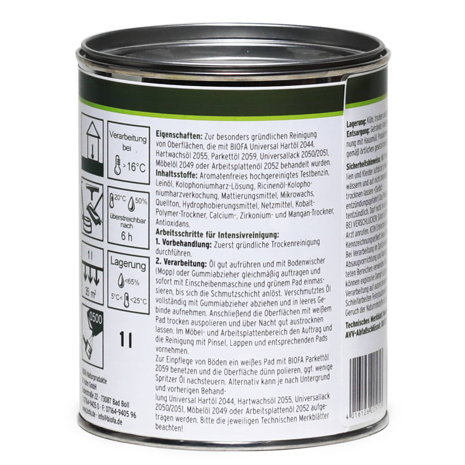 BIOFA Intensivölreiniger ist ein hochwertiges Produkt zur Intensivreinigung von Holz-, Kork- und Linoleumoberflächen, die mit BIOFA Universal Hartöl 2044, Hartwachsöl 2055 oder 2059 Parkettöl behandelt wurden.