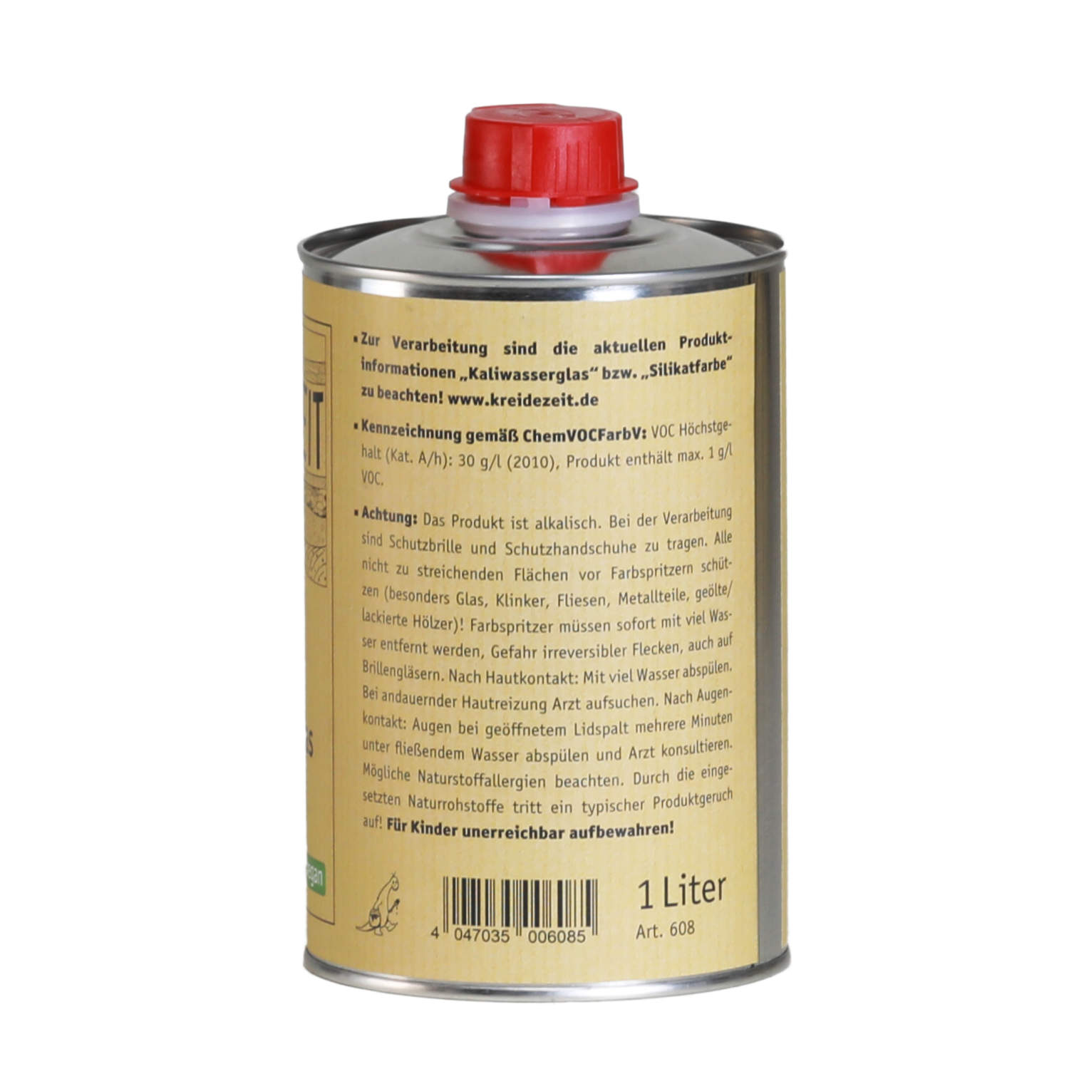 Das neue Kaliwasserglas löst das alte Farbenwasserglas als Bindemittel für das Silikatweiß für Wasserglas ab. Vorteile für den Verbraucher ergeben sich dadurch, dass das neue Produkt vorverdünnt ist und so nur noch im richtigen Verhältnis mit dem Silikatweiß versetzt werden muss. Das wasserverdünnbare Lösemittel ist organisch und konservierungsmittelfrei.