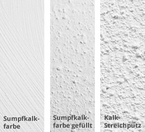 Bei Renovierung wie auch zum Erzielen verschiedener Oberflächenstrukturen können Sumpfkalkfarbe, Sumpfkalkfarbe -gefüllt- und der Kalk Streichputz beleibig und abwechselnd miteinander überstrichen werden. Nach erfolgter Grundierung mit Kasein Grundierung können zudem Vega Wandfarbe, Lehmstreichputz weiß, Lehmfarbe weiß oder Leimfarbe zum Überstreichen eingesetzt werden.