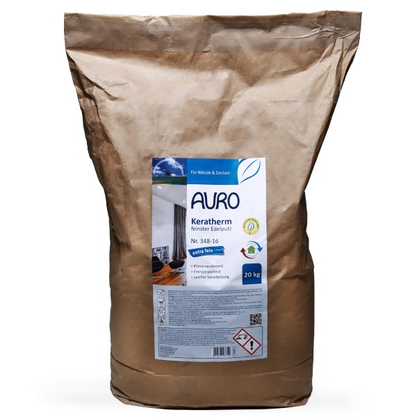 Keratherm extra fein hat eine Körnung von 0,5 mm, kann in Schichtstärken von 0,9-3 mm je Lage aufgebracht werden. Durch seine einzigartige Zusammensetzung hat er eine besonders lebendige Struktur. Er kann nach vollständiger Durchtrocknung mit AURO Profi-Kalkfarbe Nr. 344, AURO Kalk-Buntfarbe Nr. 350, AURO Ecolith Innen Nr. 341 + 584 oder AURO Kalkfarbe Nr. 326 überstrichen werden.
