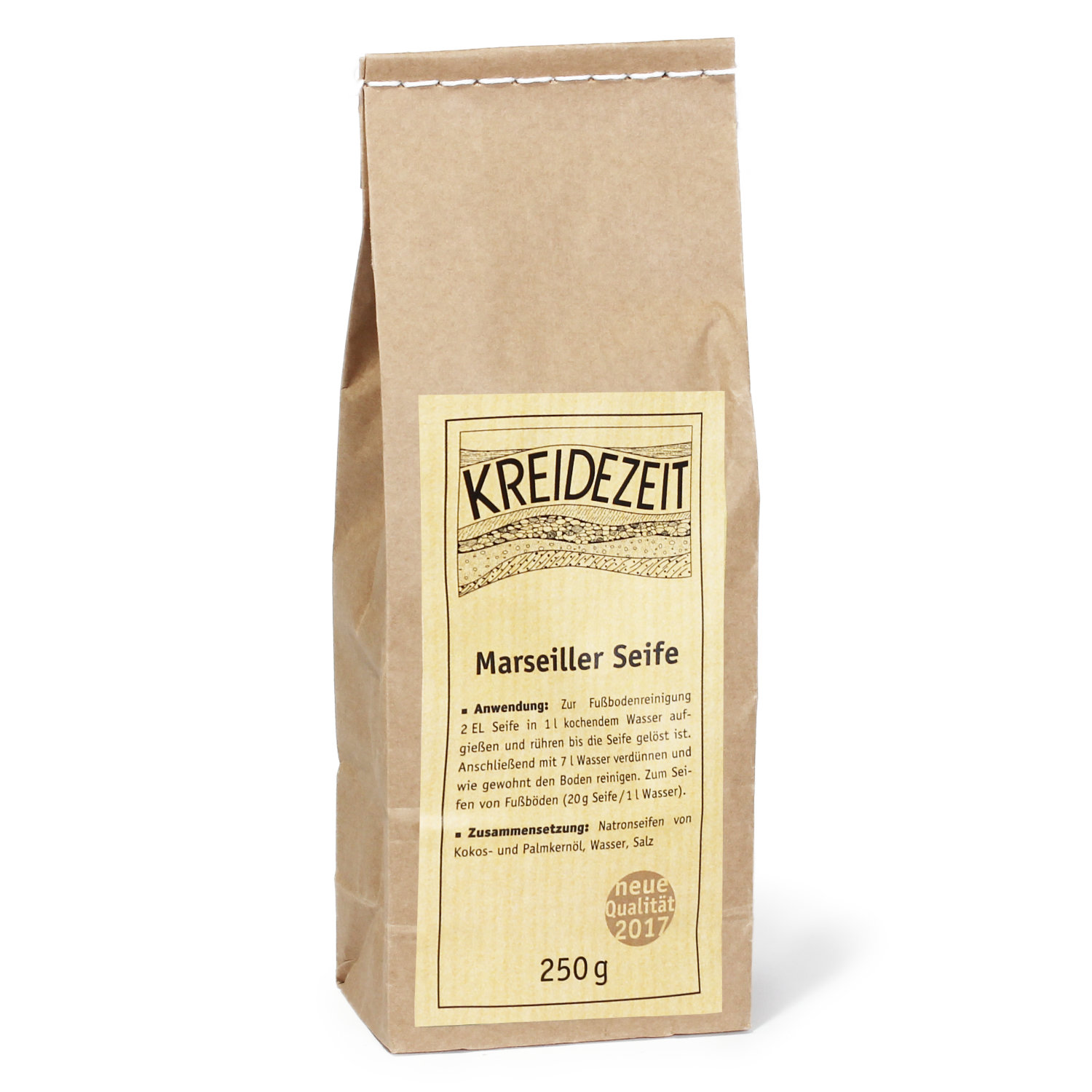 Erstmals wurde die Seife während des 17. Jahrhunderts in Marseille hergestellt. Zum Sieden der Seife werden ausschließlich pflanzliche Öle verwendet. An der Rezeptur ist bis zur heutigen Zeit nichts geändert worden. Um die Seife leichter löslich zu bekommen wird sie genadelt.