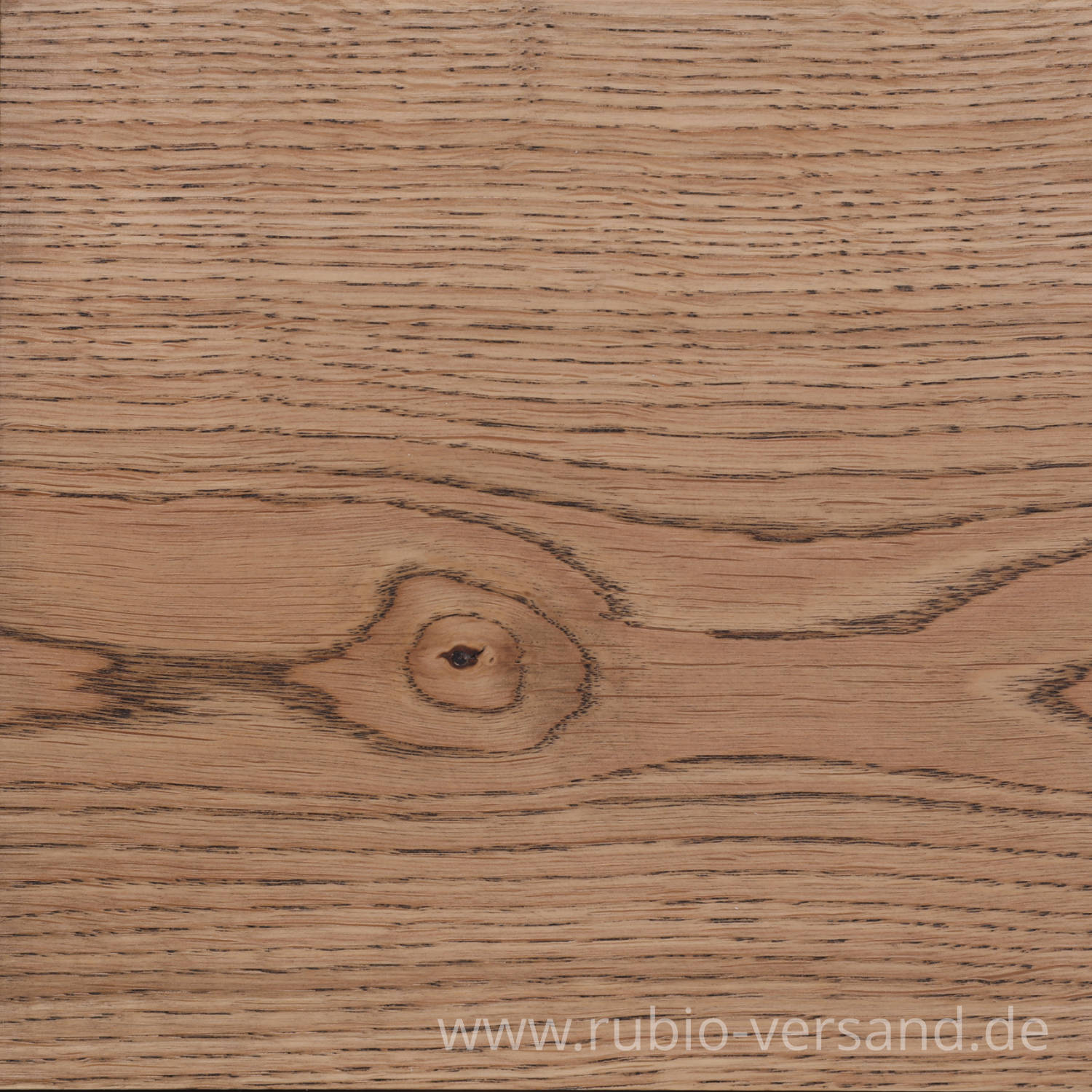 RMC Oile sind in einer Vielzahl an unterschiedlichen Farbtönen erhältlich. Der resultierende Farbton ist allerdings von verschiedenen Faktoren wie Maserung, Schleifbild und vor allem der zu ölenden Holzart abhängig. (Die Musterfläche ist eine lebhafte Eiche). Der Grundton des Holzes kann nach dem Ölen nicht mehr verändert werden. Aus diesem Grund empfehlen wir Ihnen dringend eine kleine Musterfläche auf Ihrem Holz anzulegen. Von allen Farbtönen erhalten Sie für diesen diesen Zweck Proben a 20ml mit dem jeweiligen Original Rubio Farböl.