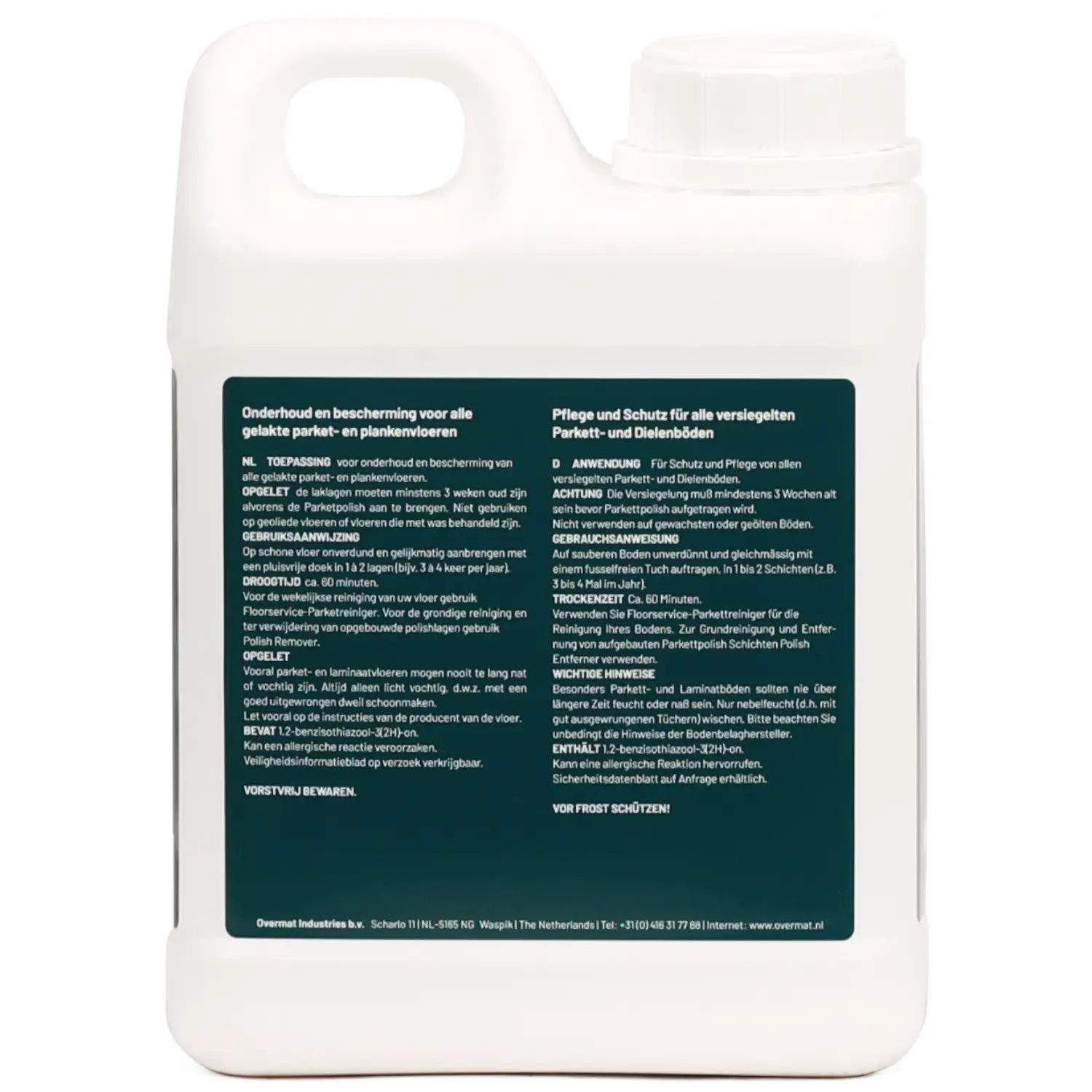 Ein Liter der Floorservice Parkettpflege reicht für 60 bis 80 m² Bodenfläche.