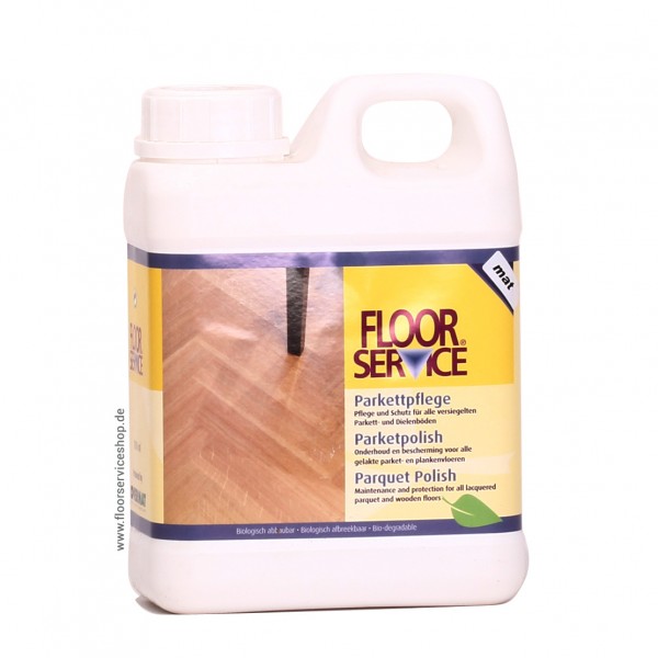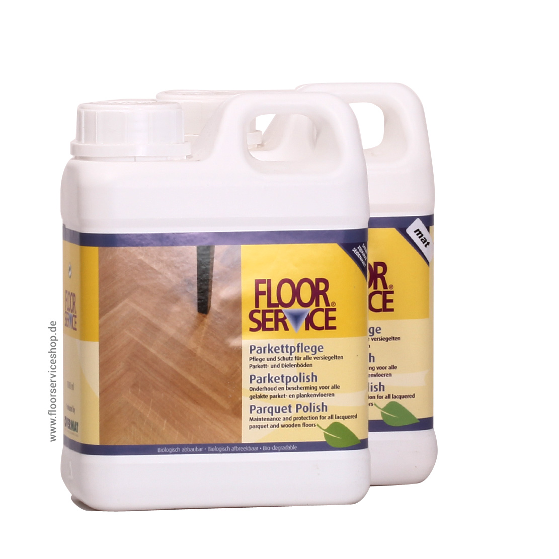 Die Floorservice Parkettpflege Matt eignet sich für die Anwendung auf allen versiegelten Holzböden. Sie schützt die Oberfläche und verhindert, dass der matt versiegelte Fußboden glänzend wird. Die Parkettpflege lässt den Boden schmutz- und wasserabweisend werden.