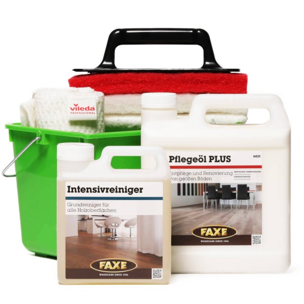 Set im Gesamtwert von XX Euro als Aktions-Sparset für die Pflege von weiß geölten Böden. Dieses Set enthält: