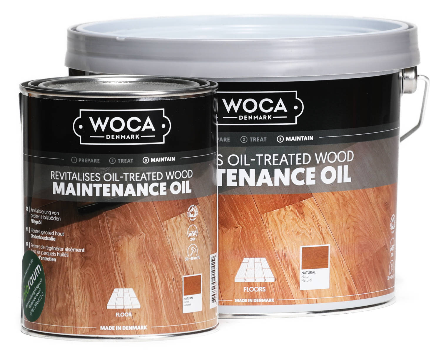 WOCA Pflegeöl natur ist nicht pigmentiert und eignet sich so für die Behandlung aller geölten Holzböden. Es verstärkt durch die Behanldung die Eigenfarbe des Holzes und hebt die Holzmaserung hervor.