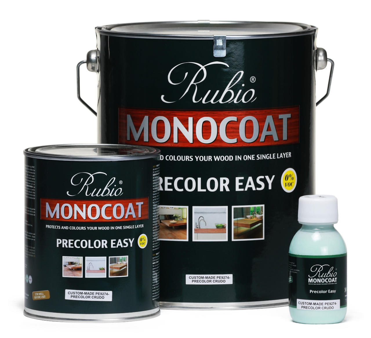 Die RMC Precolor Easy sind in 14 verschiedenen Farbtönen erhältlich, die untereinander nach Belieben gemischt werden können. Ebenso können sie mit den 40 Farbtönen des RMC Oil Plus 2C kombiniert werden. Somit werden fast unbegrenzte Möglichkeiten an kreativen Farbergebnisse geschaffen. Mit der Variante Crudo erzielen Sie einen unvergleichlichen Rohholz-Effekt.