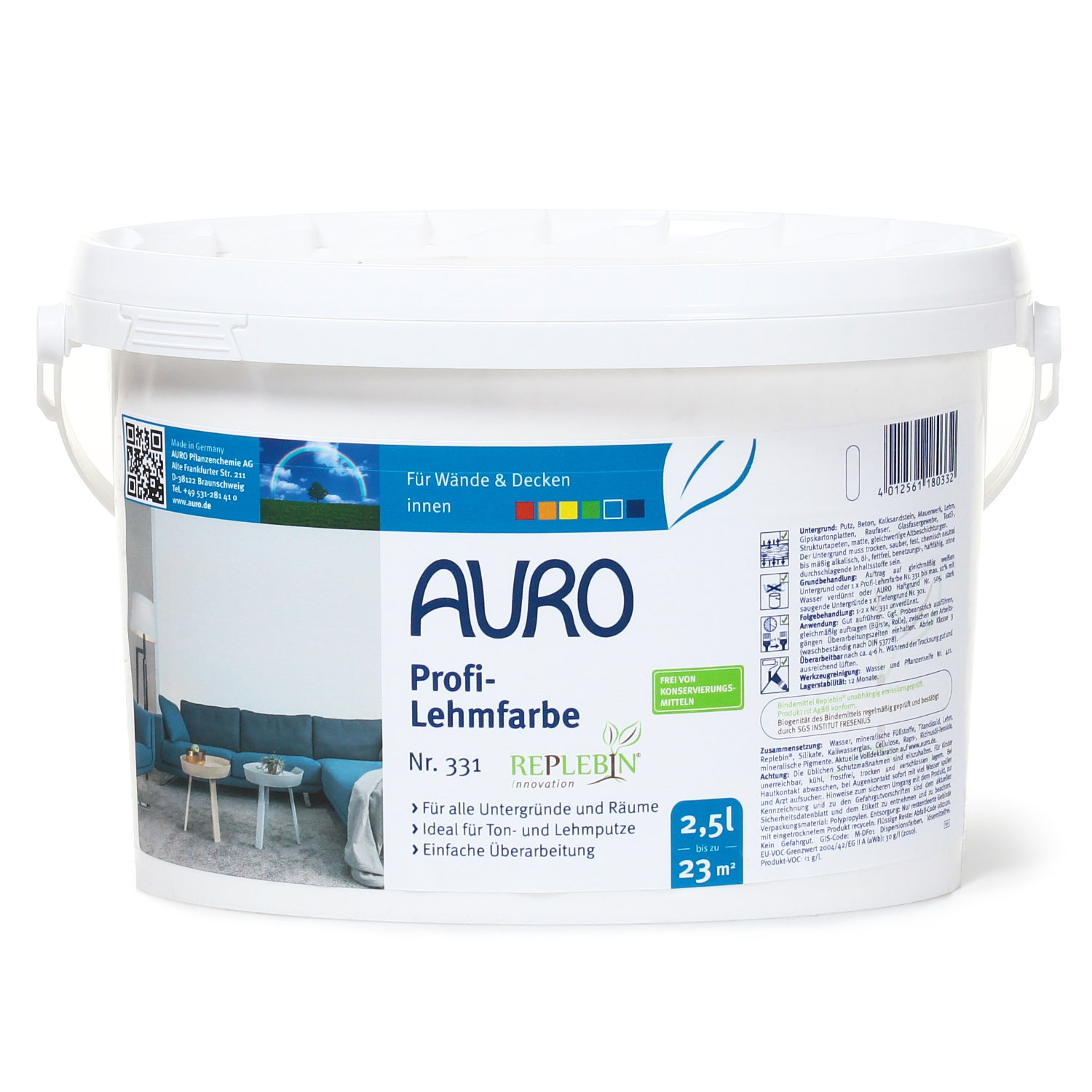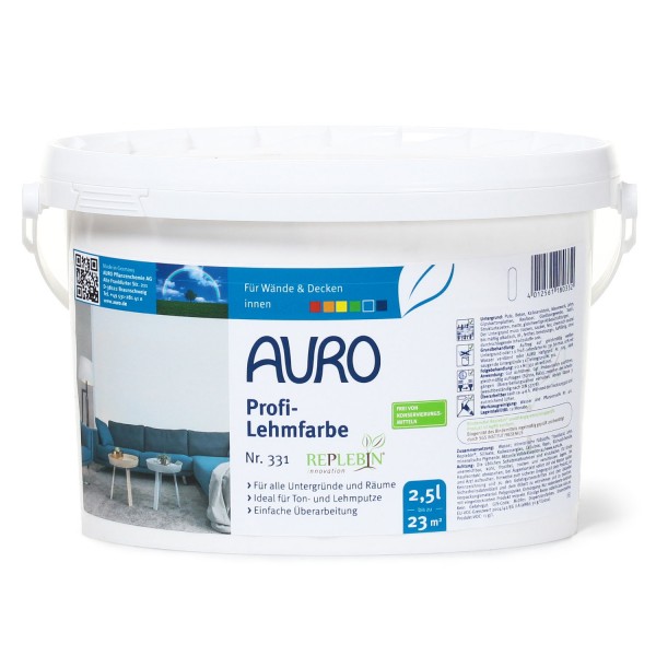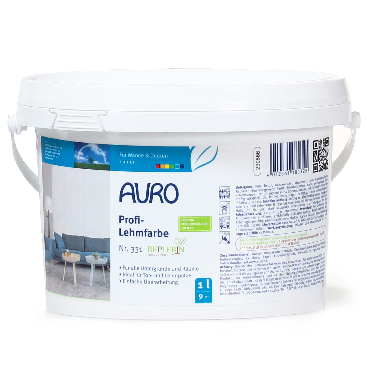 Die AURO Lehmfarbe Nr. 331 zeichnet sich vor anderen vergleichbaren Produkten dadurch aus, dass sie vollständig frei von jeglicher Art von Konservierungsmitteln ist. Die Wohnraumfarbe eignet sich für alle mineralischen und organischen Untergründe auf Innenflächen und kann sogar in Bad und Küche bedenkenlos verarbeitet werden, da sie spritzwasserresistent ist. Die angenehm cremeweiße Farbe ist diffusionsoffen, feuchtigkeitsregulierend und atmungsaktiv: die positive Beeinflussung des Raumluftklimas kommt nicht von ungefähr, sondern von den durchweg überzeugenden Eigenschaften der konsequent ölkologischen Dispersions-Lehmfarbe.