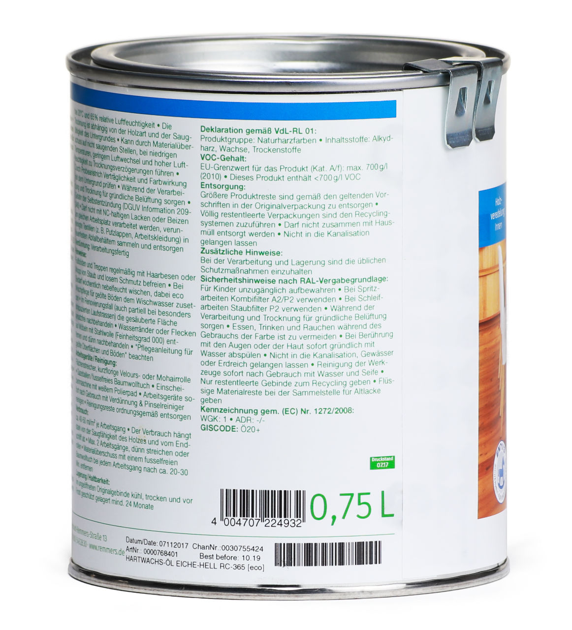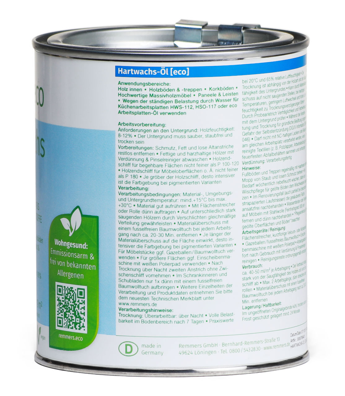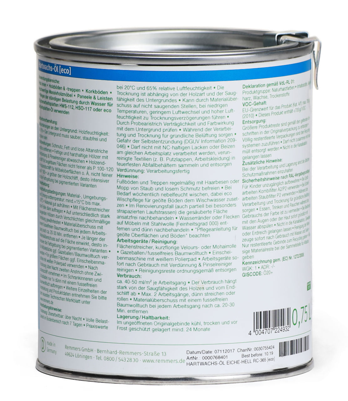 Stellen Sie Ihre Frage zum Produkt "Remmers eco Hartwachs Öl [eco] farblos".