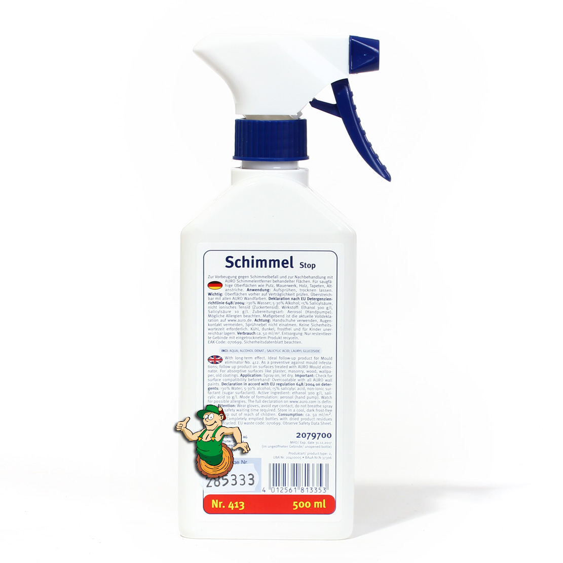Der AURO Schimmel-Stop Nr. 413 bietet sicheren Schutz vor Schimmel mit Langzeitwirkung. Dieses Spray ist für den Innen- und Außenbereich geeignet. Es ist chlor- und lösemittelfrei. Geeignet für Materialien wie Fliesen, Holz und Wände. Auch für Feuchträume geeignet. Eine vorausgehende Behandlung mit dem Schimmelentferner Nr. 412 ist zu empfehlen.