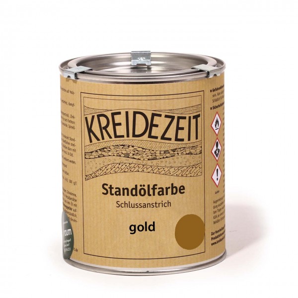 Standölfarbe gold und silber sind dekorative Endanstriche für das KREIDEZEIT Standölfarben System. Sie leuchten seidenmatt in einem silbrigen Aluminiumfarbton bzw. einem mittleren Goldfarbton. Kreidezeit Standölfarbe ist harzfrei und dadurch in ihrer Diffusionsfähigkeit nicht unnötig eingeschränkt; Rißbildung durch Versprödung wird vermieden. Zur Pigmentierung der cobalt- und biozidfreien Farbe werden ausschließlich wetterfeste, lichtechte Gold- und Silberglanzpigmente eingesetzt. Die Pigmente sind lichtecht und wetterbeständig. KREIDEZEIT Standölfarben sind verarbeitungsfertig eingestellt. Die Lebensdauer eines Ölanstriches im Außenbereich hängt wesentlich von der Berücksichtigung des konstruktiven Holzschutzes ab.