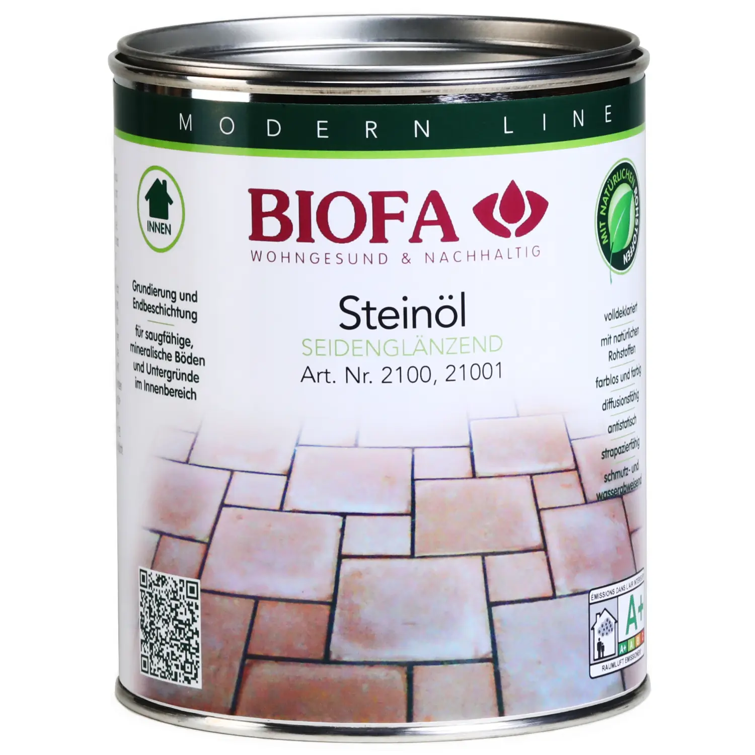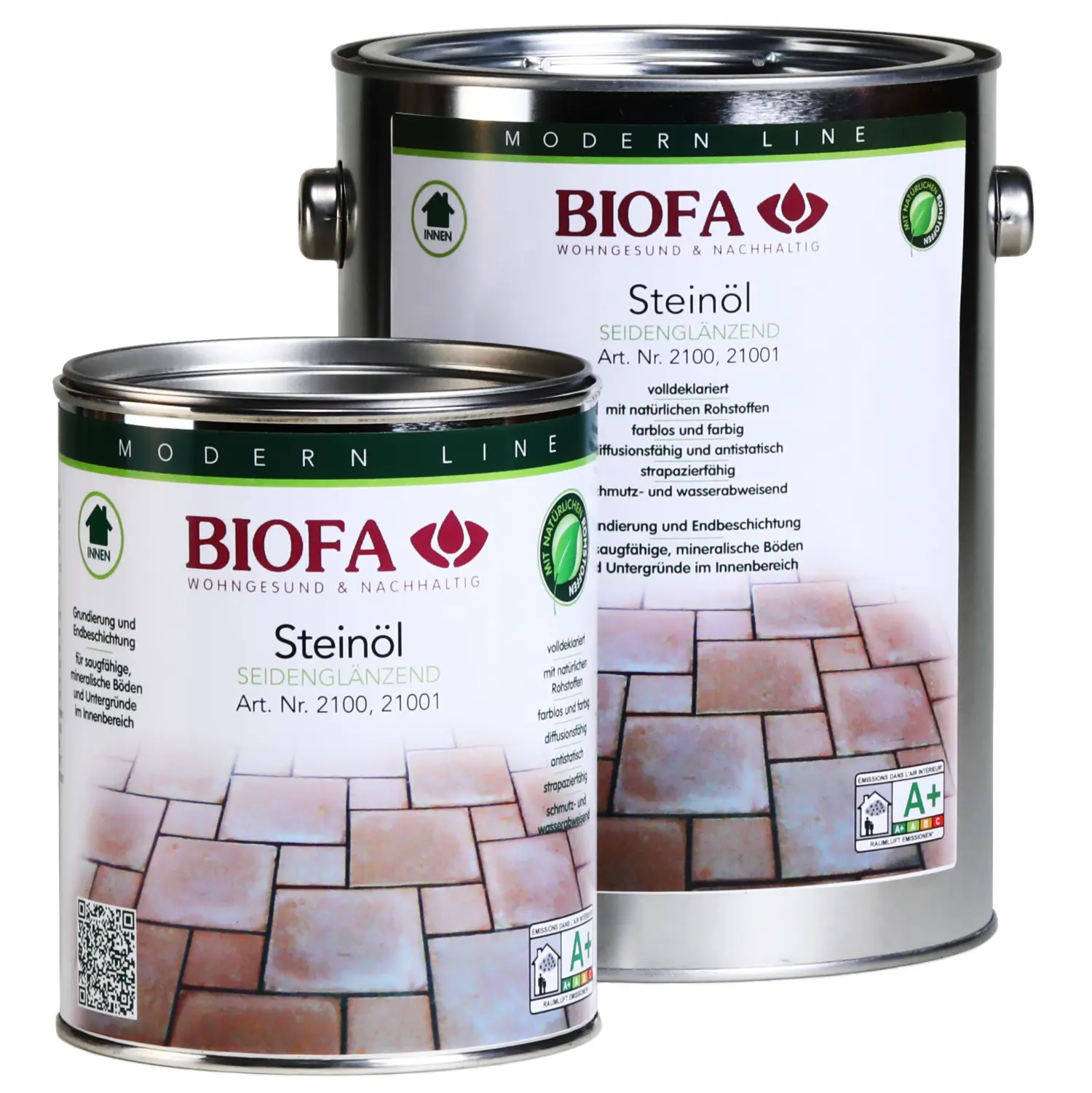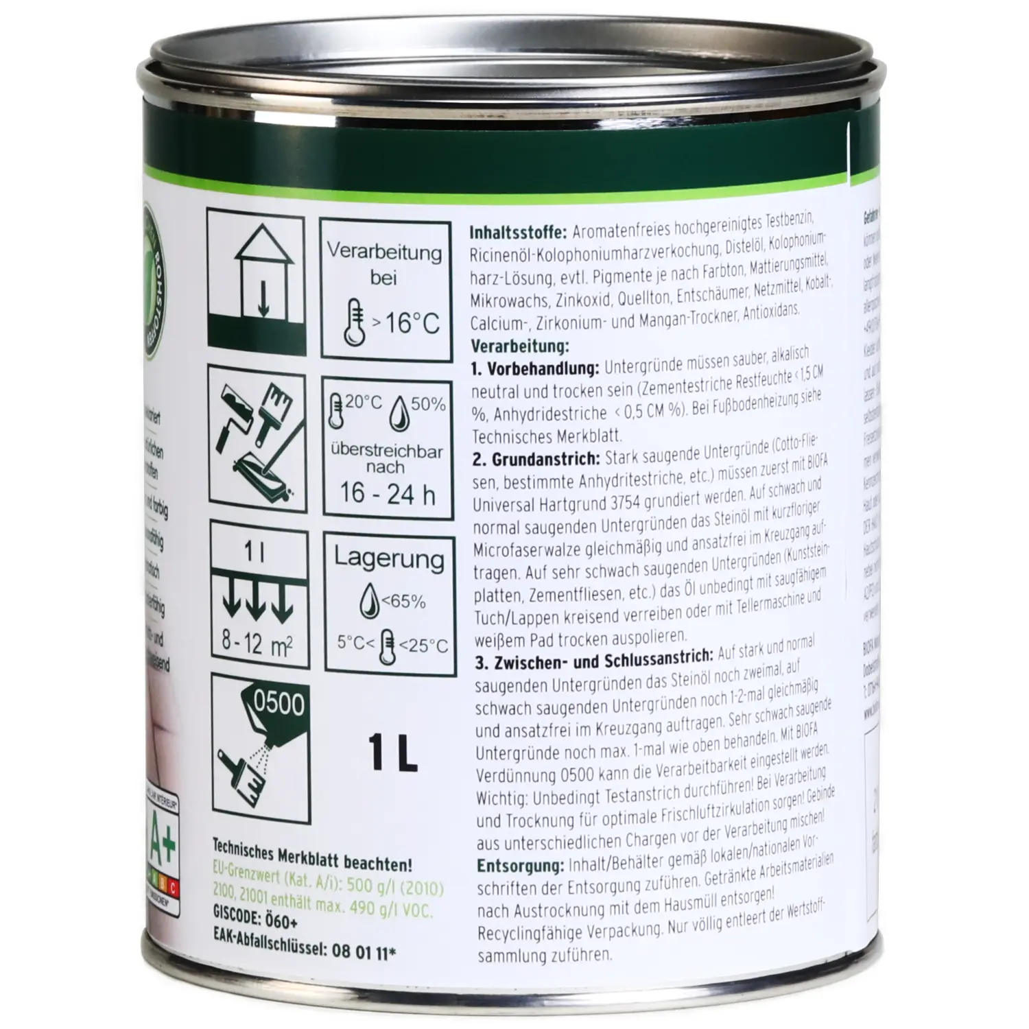BIOFA Steinöl wird aus hochwertigen, nachwachsenden Rohstoffen hergestellt und ergibt eine seidenglänzende, strapazierfähige, wasserabweisende Oberfläche. Es eignet sich je nach Untergrund als farblose oder transparent eingefärbte Grundierung und Schlussbeschichtung für saugfähige mineralische Untergründe im Innenbereich. Achtung! Oxydativ trocknende Öle zeigen eine materialtypische Vergilbung. Dies betrifft vor allem farblose, weiße, blaue und helle Beschichtungen. Die Vergilbung tritt besonders als Dunkelvergilbung bei dunklen Lichtverhältnissen sowie durch Abdeckung der Oberflächen durch Teppiche, etc. auf. Von rein weißen und hellen Farbtönen wird daher grundsätzlich abgeraten. Bitte lassen Sie sich bei der Farbauswahl von uns beraten!