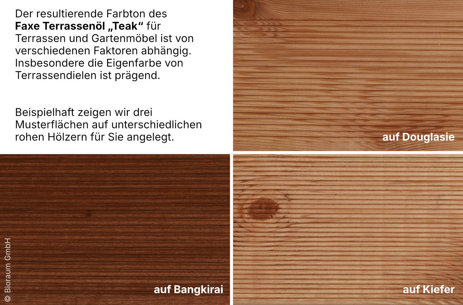 Farbton: Das Terrassenöl hat den Farbton Teak.