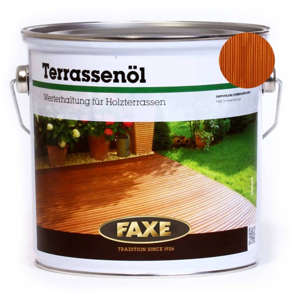 Das FAXE Terrassenöl wird für die Oberflächenbehandlung und Renovierung von gereinigten Holz- oder Bambusterrassen verwendet. Das Terrassenöl schützt das Holz/Bambus vor frühzeitiger Alterung. Die Pigmente unterstützen die Eigenfarbe des Holzes und verhindern das vorzeitige Ausbleichen.