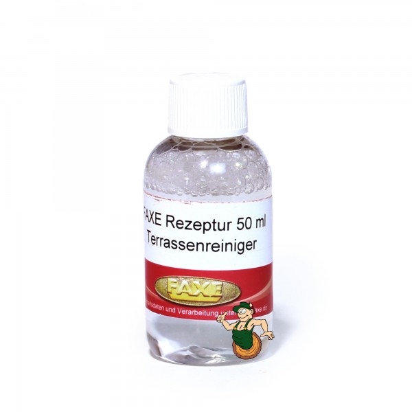 Zunächst muss der Terrassenbelag naß gemacht werden. Anschließend FAXE Terrassenreiniger zur Verarbeitung 1:5 mit Wasser verdünnen. und den Belag damit schrubben. Gelösten Schmutz und Bewuchs mit reichlich Wasser abspülen und trocknen lassen.