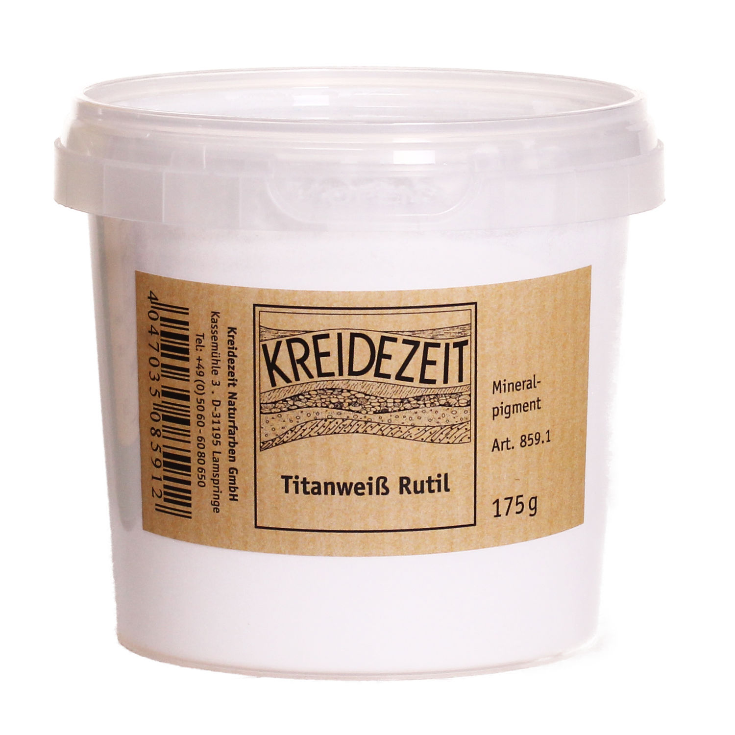 Titanweiß Rutil wird aus einem natürlichen Mineral (Rutil) gewonnen, dann gereinigt und wieder gefällt. Es zeichnet sich durch besonders hohe Deckkraft in allen Bindemitteln aus. Titanweiß Rutil ist mit allen Bindemitteln verträglich. Rutil ist chemisch resistent, lichtecht und ungiftig.