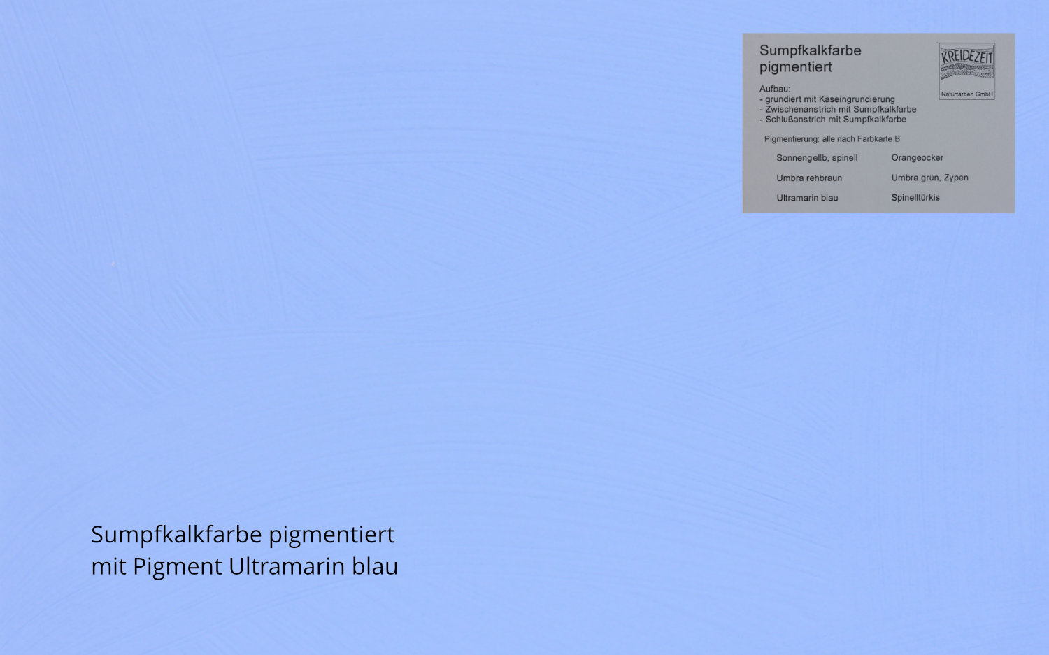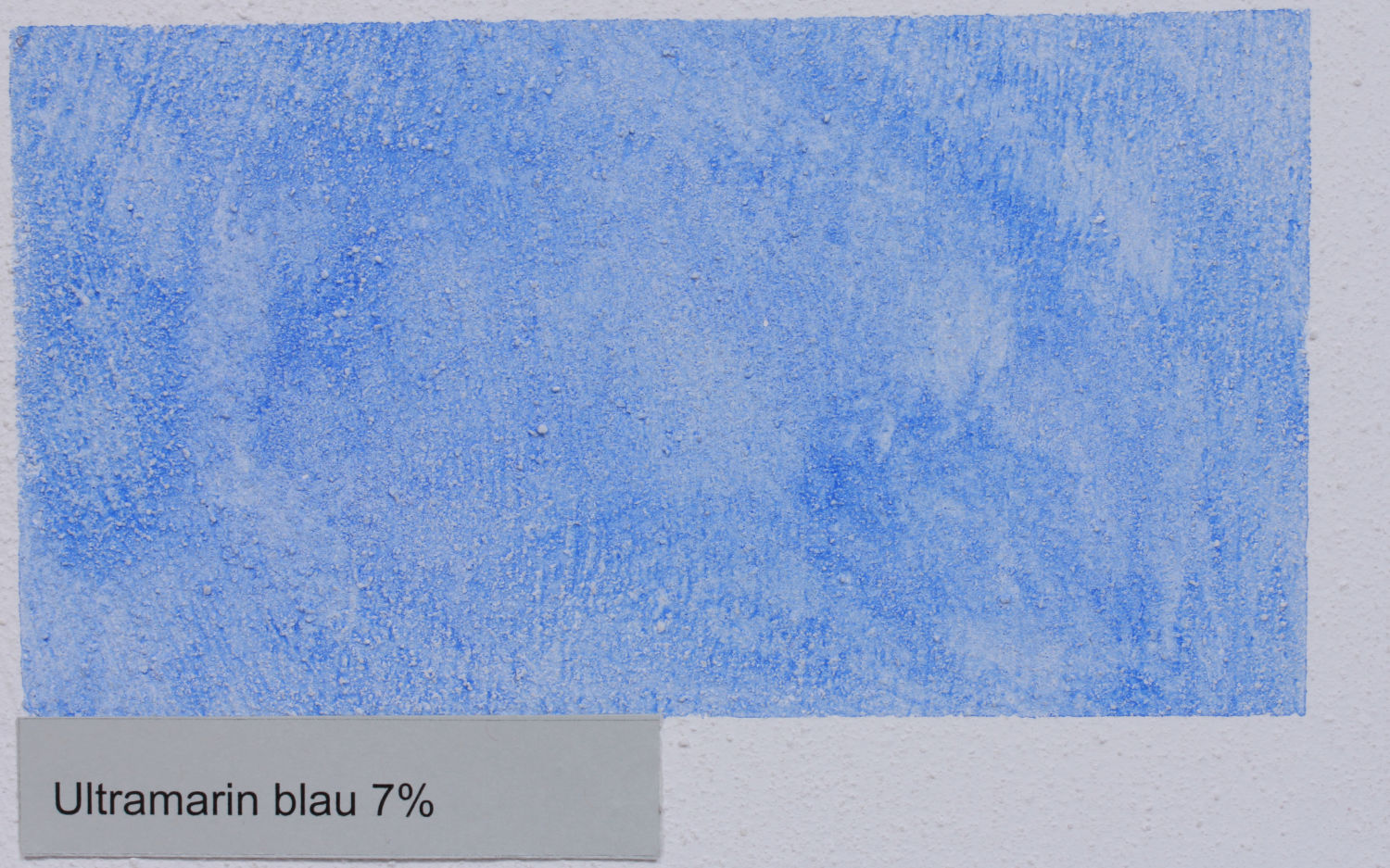 Die Farbe erhält das Ultramarinblau durch wasserhaltige Eisenoxide - dem Eisenoxidhydrat. (Fe2O H2O –, Brauneisenstein) Die KREIDEZEIT Standardpigmente gelten toxikologisch als unbedenklich, so dass sie auch zum Einfärben von Spielzeug zugelassen sind.