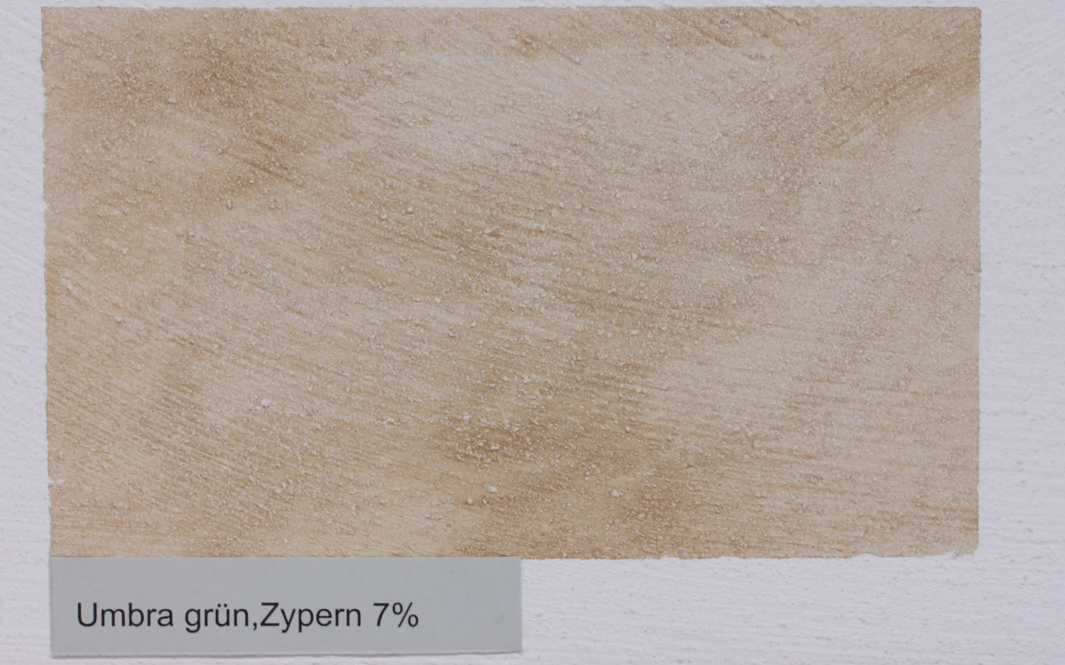 Je nach Methode wird Umbra grün, Zypern einfach mit dem pulverisiertem Grundmaterial vermengt oder in einer wässrigen oder öligen Lösung beigegeben. Die konkreten Anwendungshinweise finden Sie in den jeweiligen Produktdatenblättern. Bei manchen Pigmenten muss auf deren Alkalibeständigkeit geachtet werden.