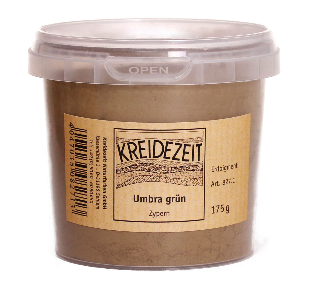 KREIDEZEIT Umbra grün, Zypern kommt hauptsächlich von der Insel Zypern, umbra grün kommt aber auch sonst weit verbreitet auf der Erde vor. Umbra grün, Zypern ist mit allen Bindemitteln verträglich.