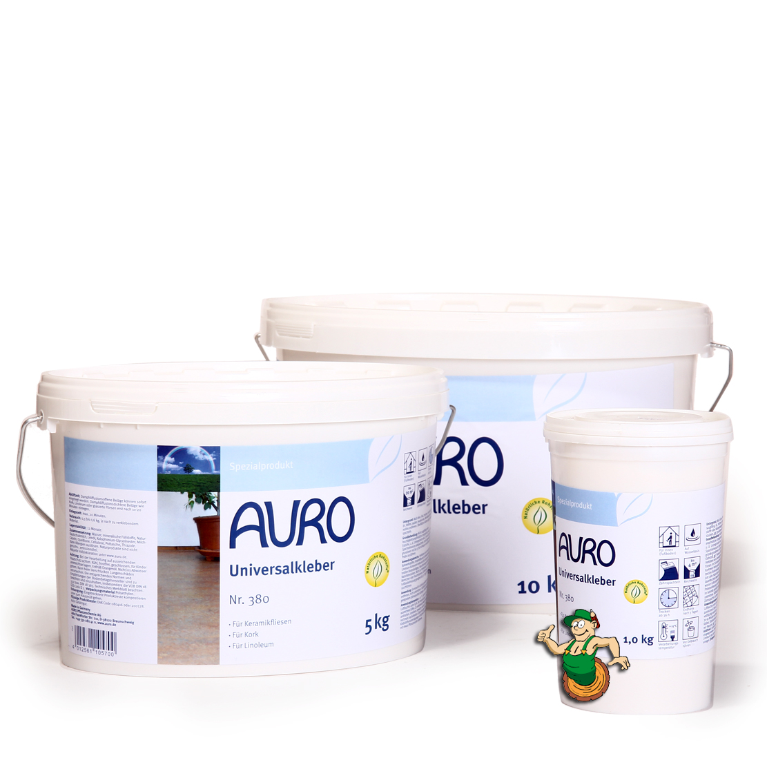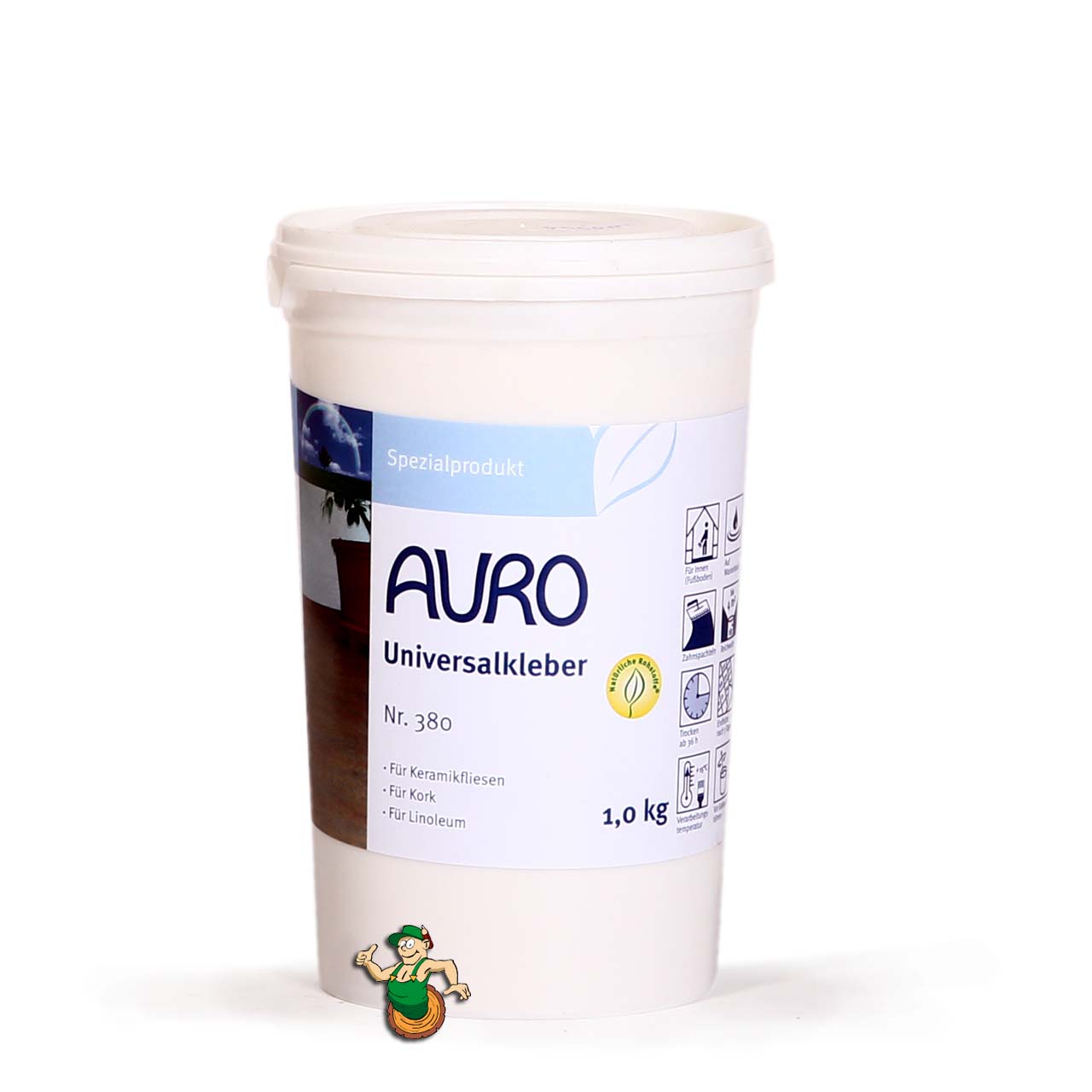 Der AURO Universalkleber Nr. 380 ist ein lösemittelfreier, atmungsaktiver, sehr emissionsarmer Klebstoff aus Naturkautschukmilch und Naturharzen. Für die Verklebung im Innebereich geeignet. Ideal für die Verklebung von Bodenbelägen wie Linoleum, Kork, textile Bodenbeläge, Naturfaserteppichböden mit Jute und Naturlatexrücken, Keramikfliesen in trockenen Bereichen, Natursteinfliesen und Solnhofer Platten. Nicht geeignet für wasserbelastete Feuchträume oder auf Altbelägen (Fliese auf Fliese).