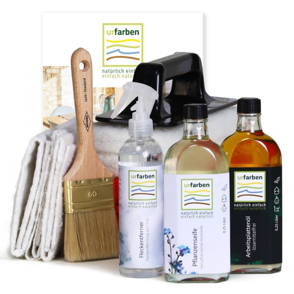Stellen Sie Ihre Frage zum Produkt "Urfarben Arbeitsplatten Pflege Set intensiv".