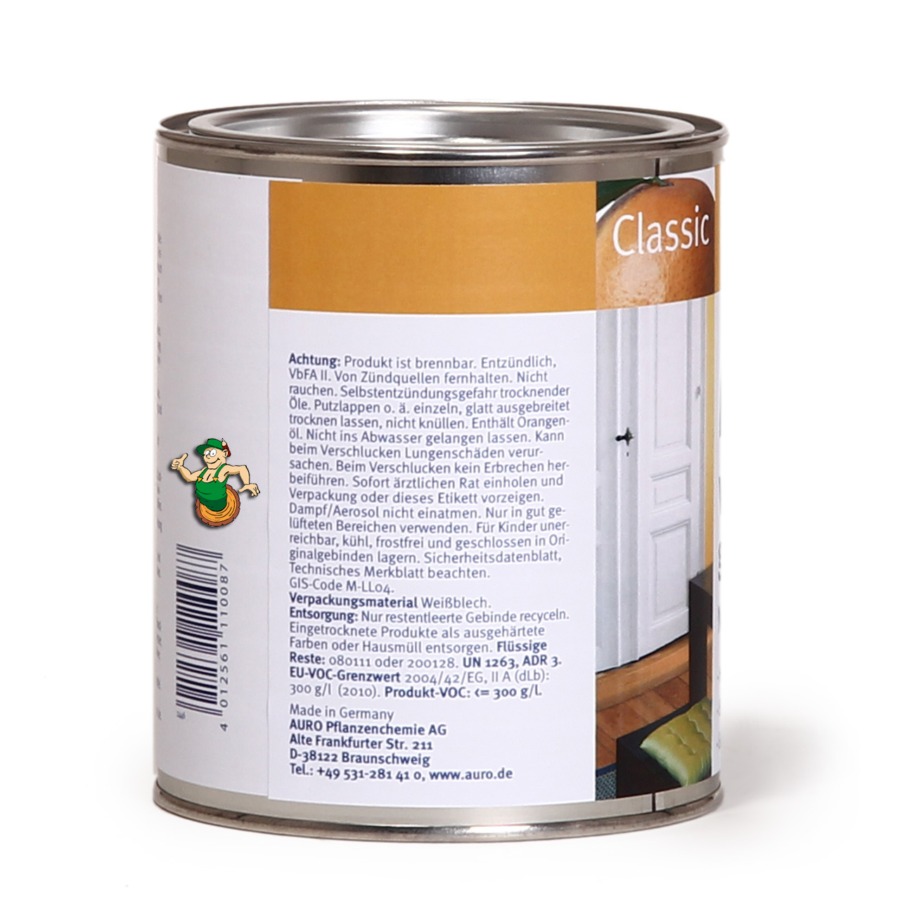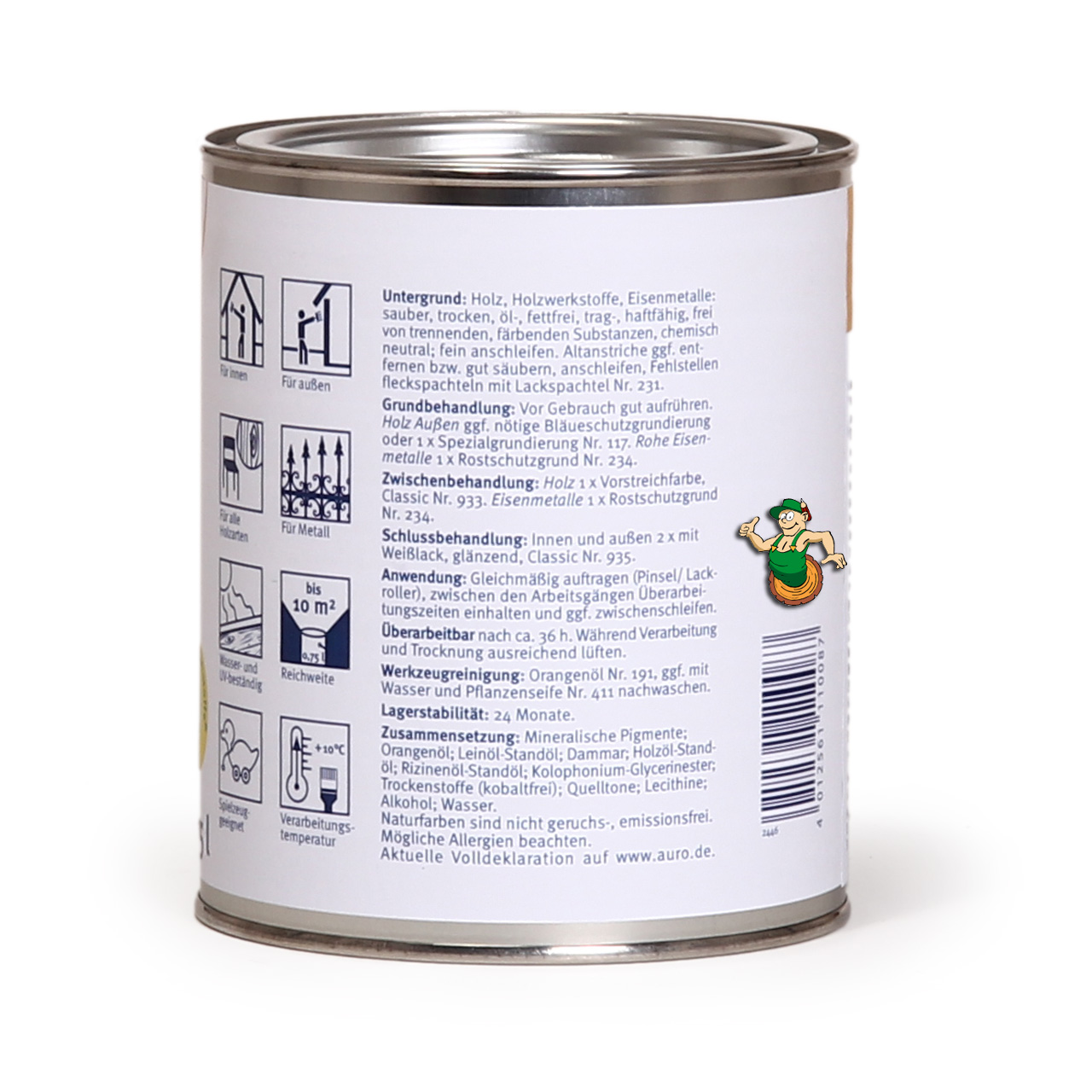 Ein glänzend deckender Lack für Holz und Eisenmetall im Innen- und Außenbereich mit natürlichem Zitrusduft. Auch für Spielzeuge geeignet, da geprüft auf Speichel- und Schweißechtheit. Eine weitere Vorbehandlung ist nicht nötig.