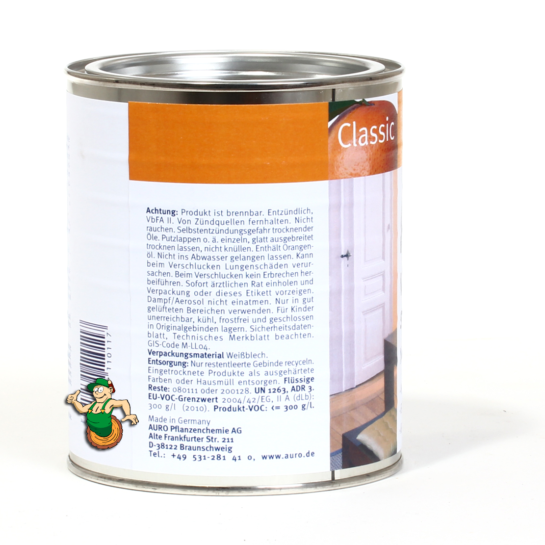 Lack mit Orangenschalenduft, lässt sich auf ölgrundierten Untergründen aufbringen, gute Verarbeitbarkeit, hohe Deckkraft, 2-maliger Anstrich reicht